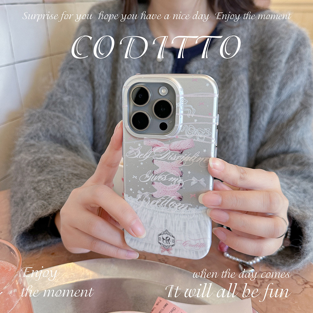 coditto银灰蕾丝电镀磨砂适用iPhone16promax14pro手机壳全包少女心苹果15promax新款13pro14promax甜美原创