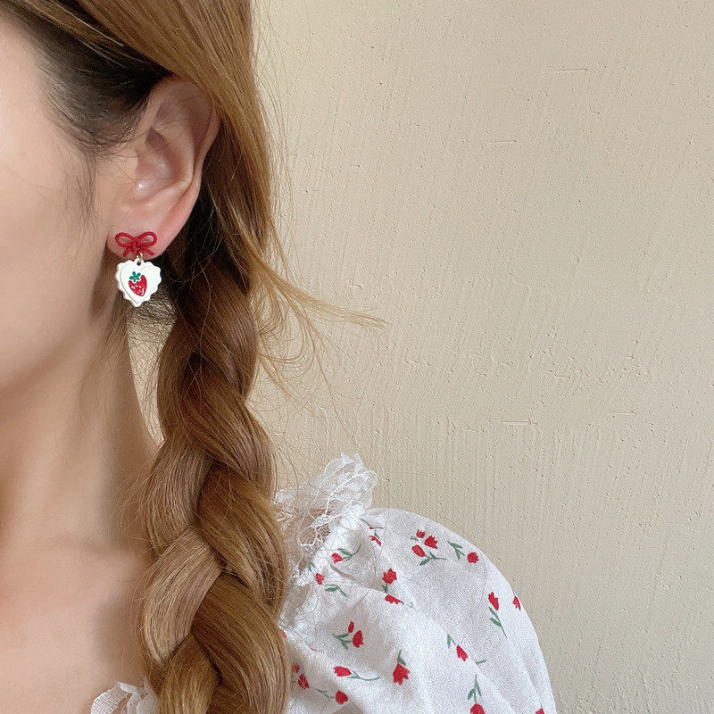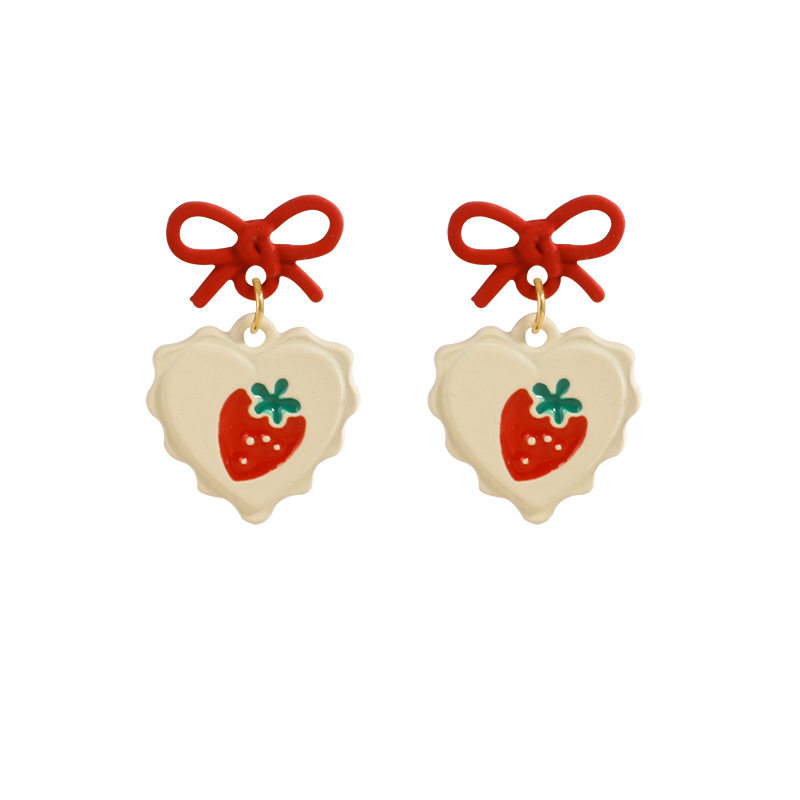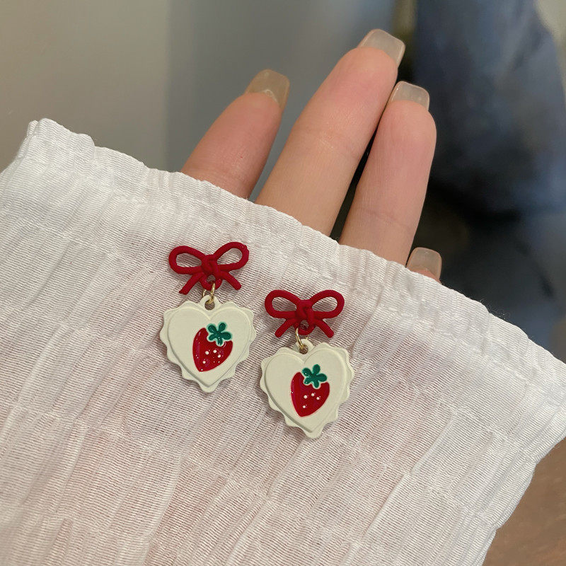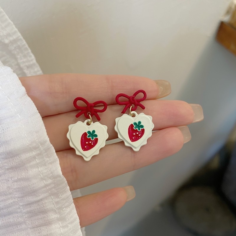夏季爱心草莓耳环2021年新款潮蝴蝶结耳饰女耳夹无耳洞气质耳钉