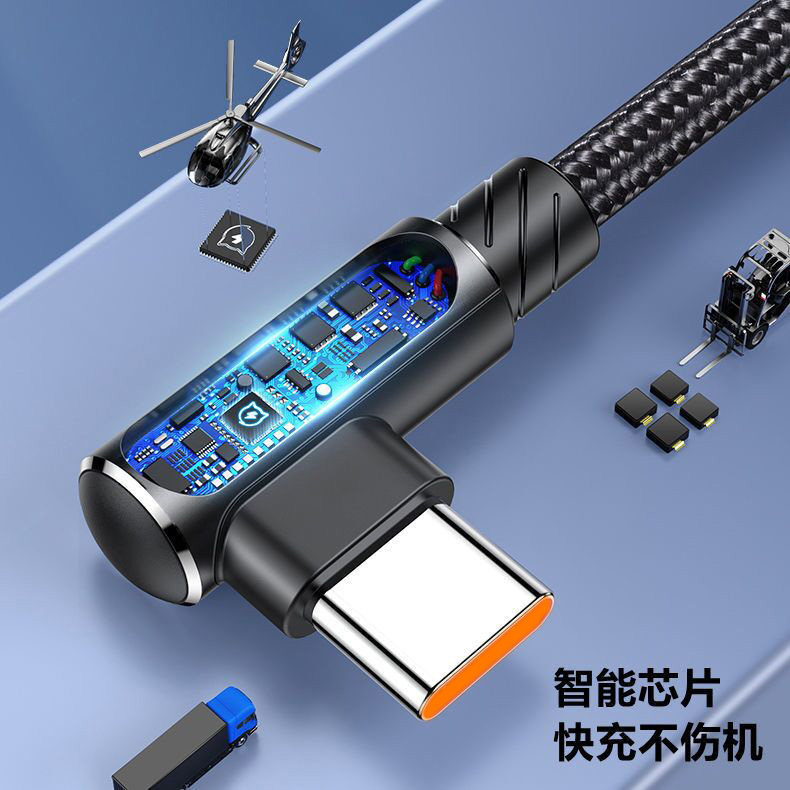 弯头手游Type-c数据线120W快充线适用华为荣耀oppo小米vivo车载通用手机闪充电线加长2米3米弯头6A闪充