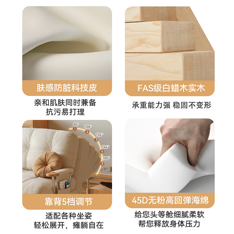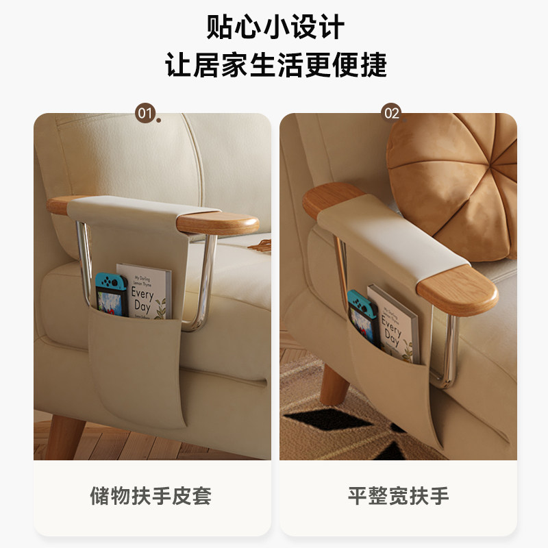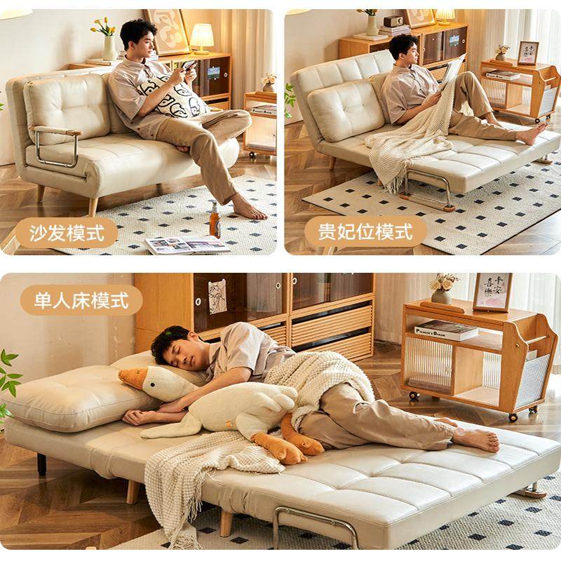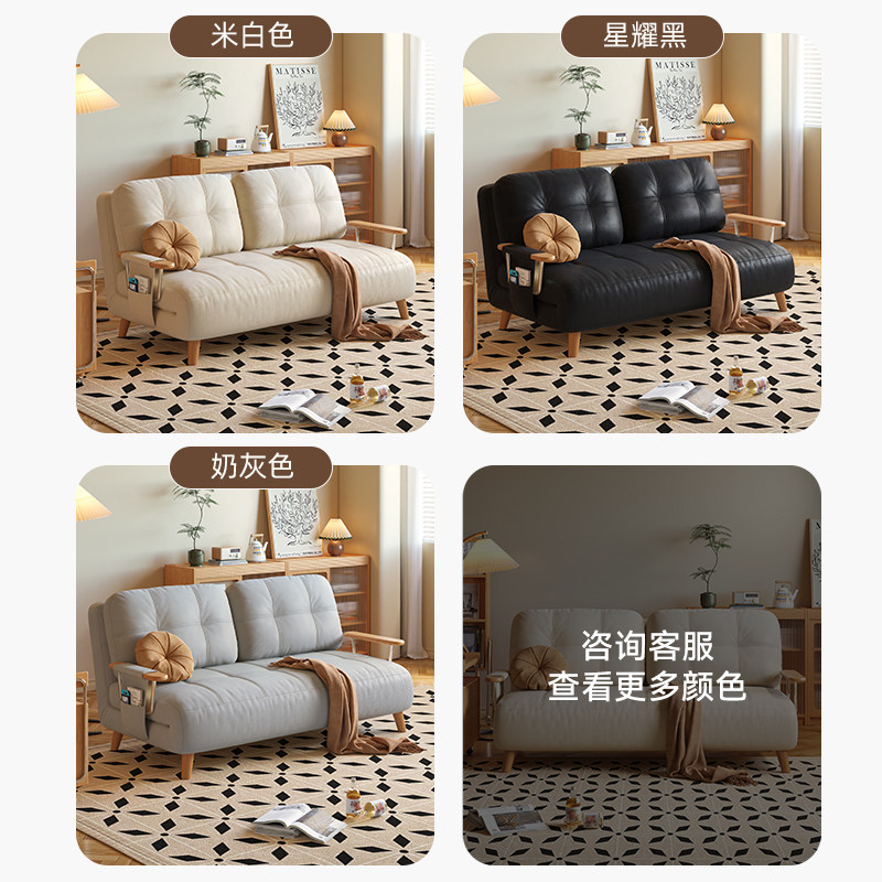 司朴奶油风芬迪沙发床原木小户型家用多功能折叠伸缩双人沙发床
