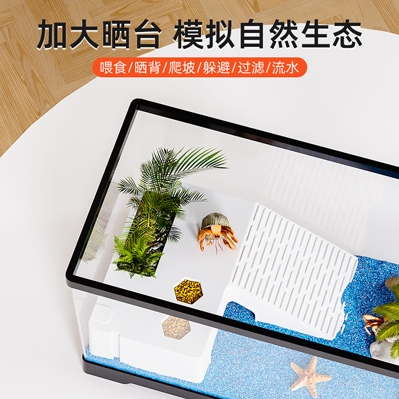 寄居蟹饲养箱带晒台小型家用生态造景全套相手蟹螃蟹亚克力水陆缸