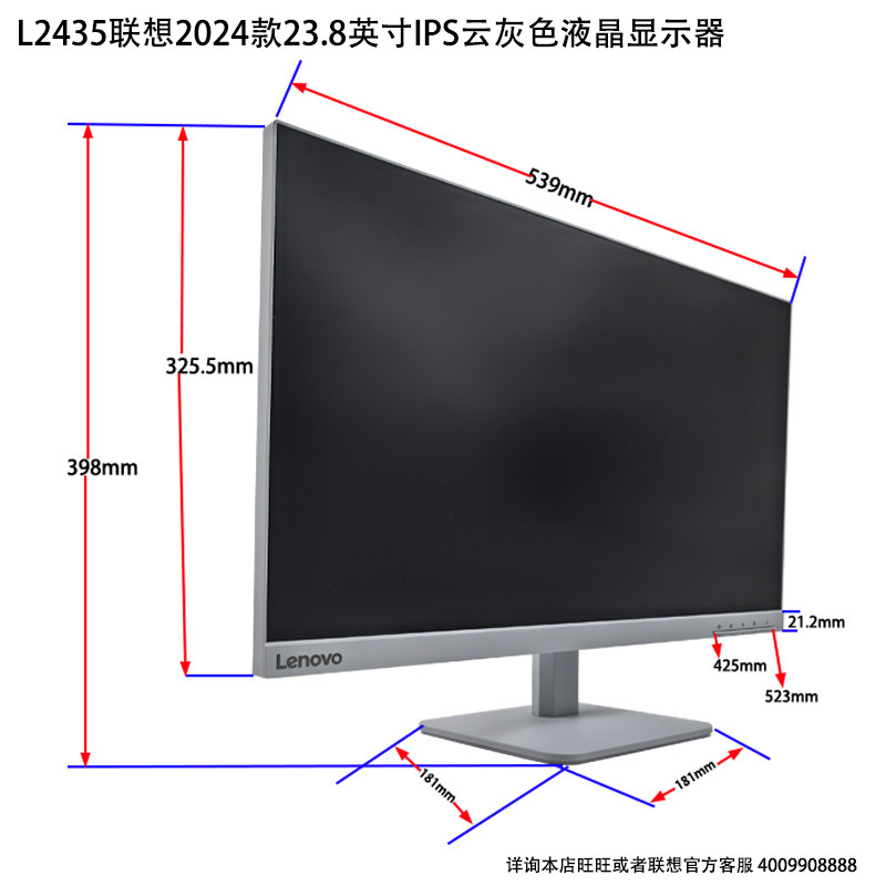联想Lenovo L2435 23.8寸屏液晶显示器A24238FL0窄边 云灰色/白色