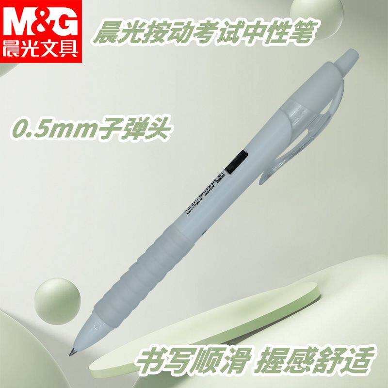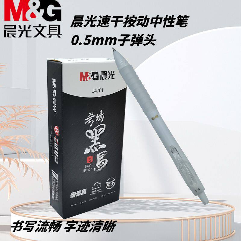 晨光按动AGPJ4701中性考试速干子弹头0.5mm超黑硅胶护套握感舒适