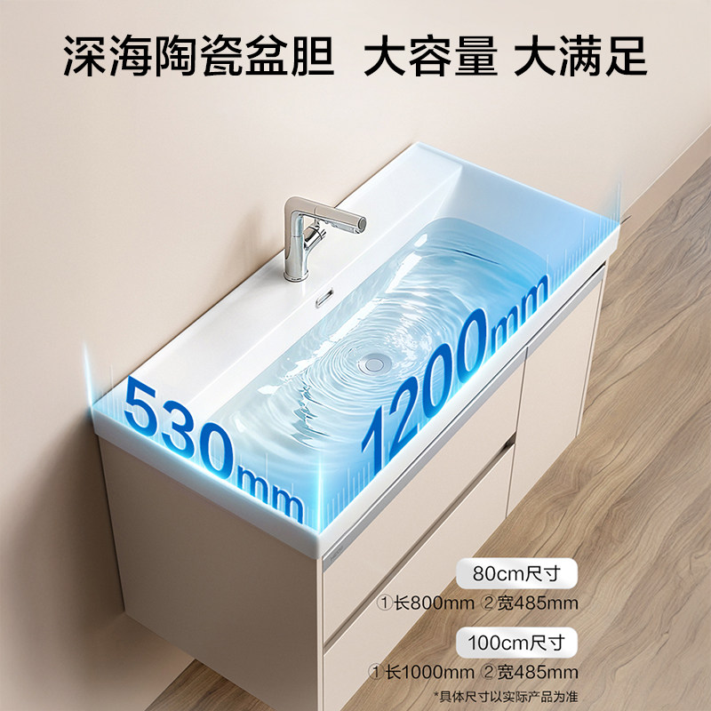 【下拉领补贴】恒洁铝合金浴室柜陶瓷一体盆大容量储物洗手盆柜