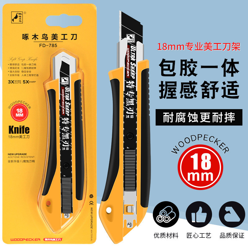 啄木鸟FD-785大号786美工刀架18mm裁纸壁纸包胶电工开箱墙纸自动
