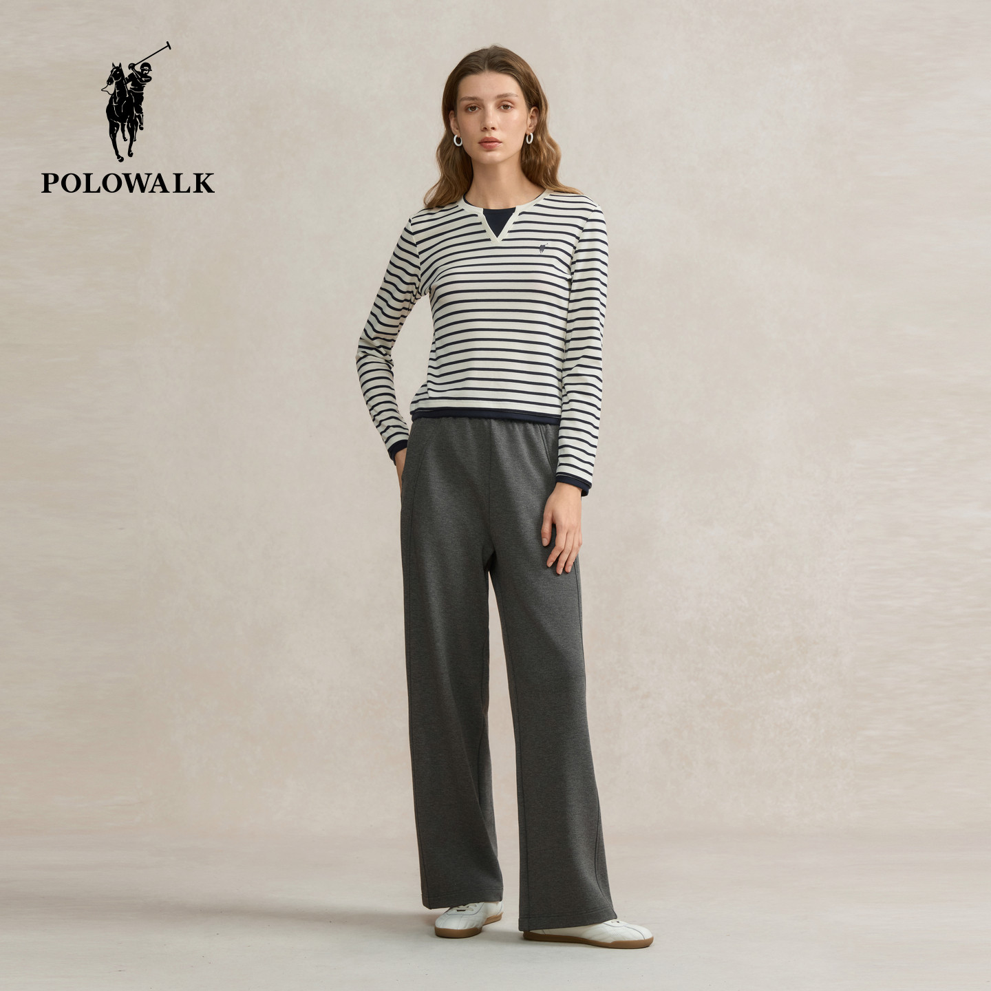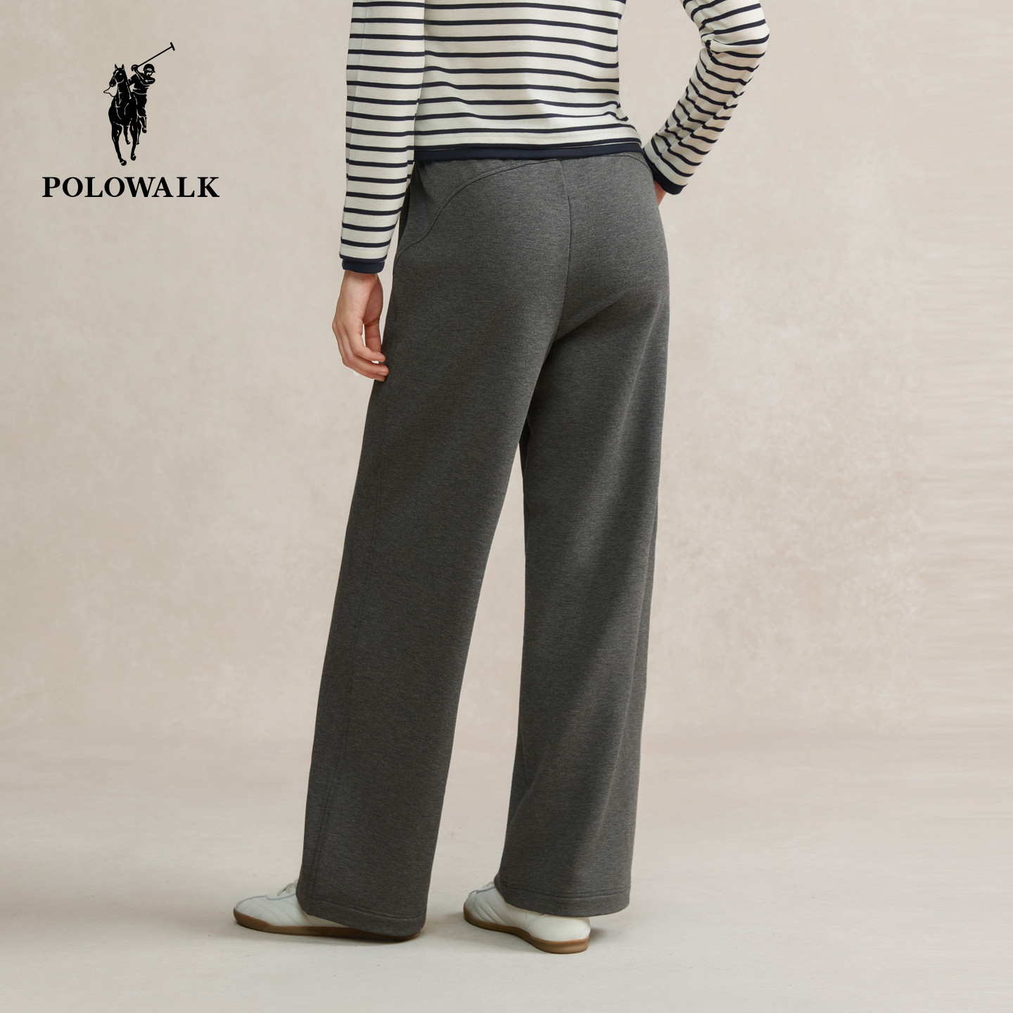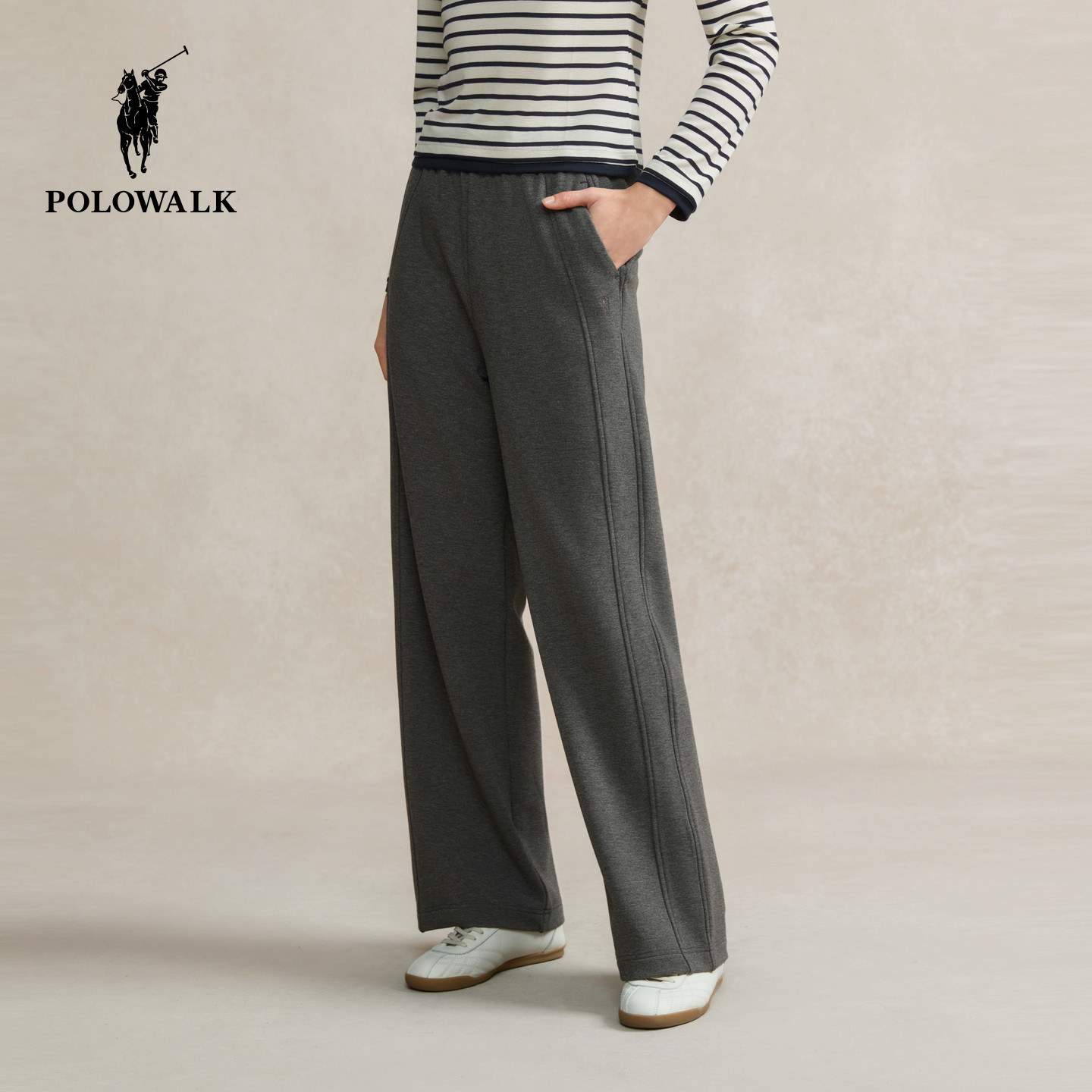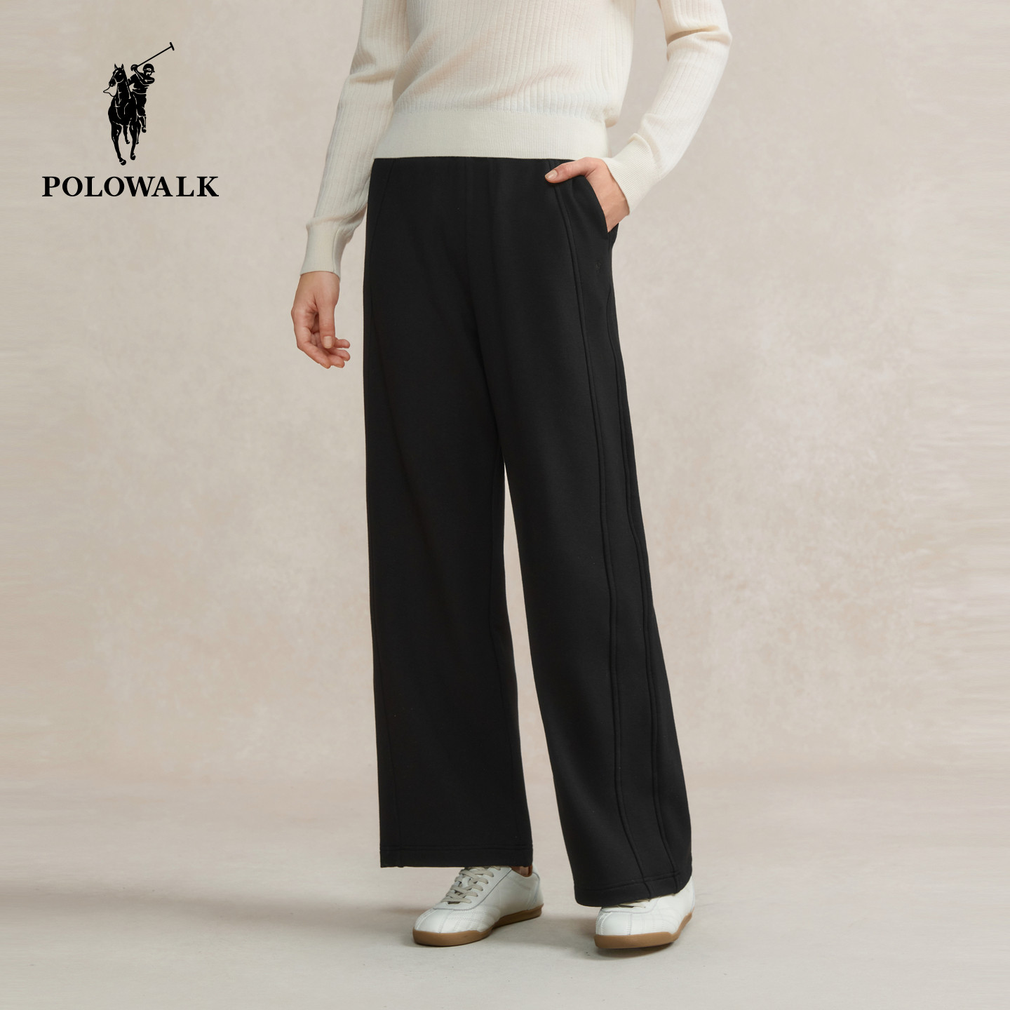 POLOWALK女式针织裤2025秋冬裤新品松紧腰直筒裤显瘦百搭阔腿裤