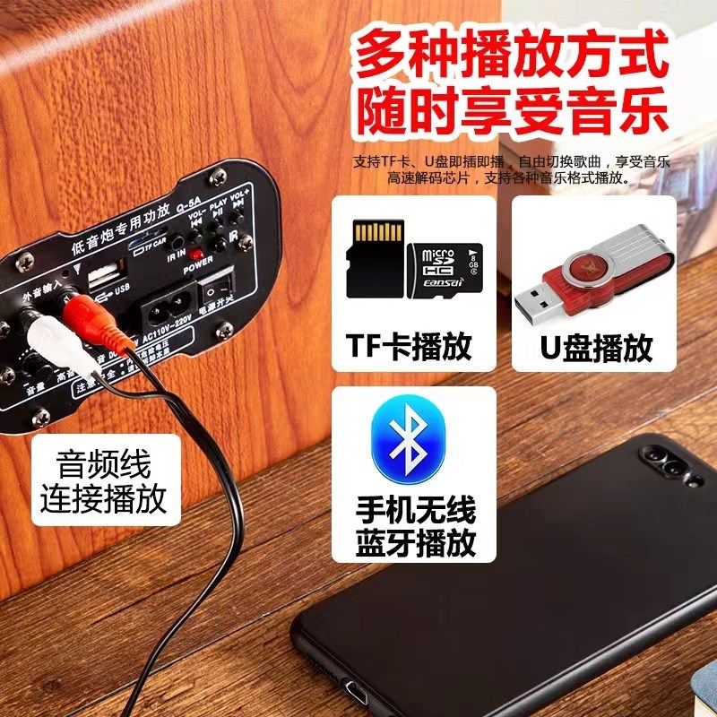 车载低音炮12V24V220V汽车无线蓝牙音响改装家用有源台式电脑音箱