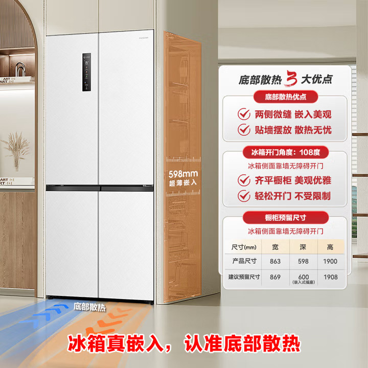 美的华凌神机547双系统超薄零嵌入式十字双开四门家用一级冰箱