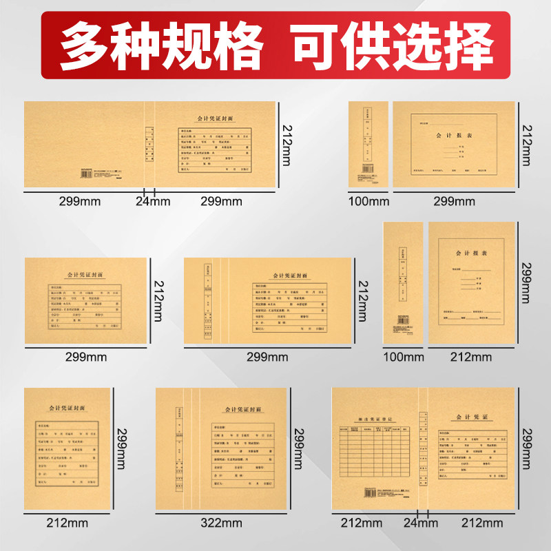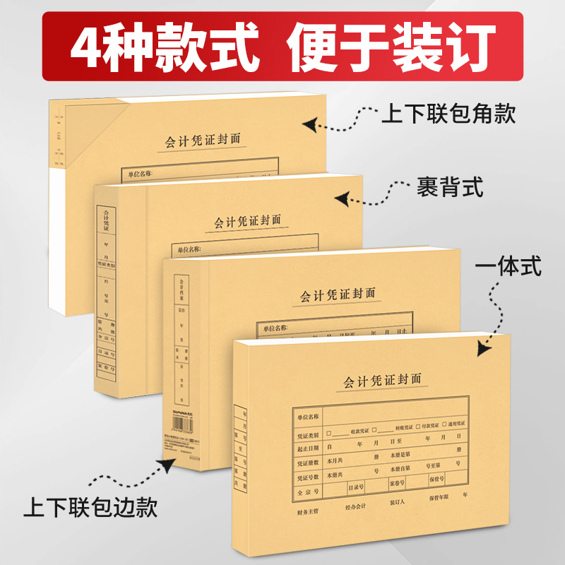 西玛50套A4会计凭证封面会计记账凭证封面a4裹背牛皮纸横版财务凭证装订封皮横版竖版加厚大号送包角可定制