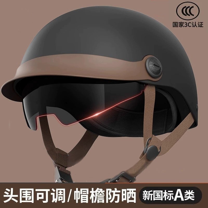 新国标3C认证电动摩托车头盔男女士冬季复古半盔四季透气轻便头盔