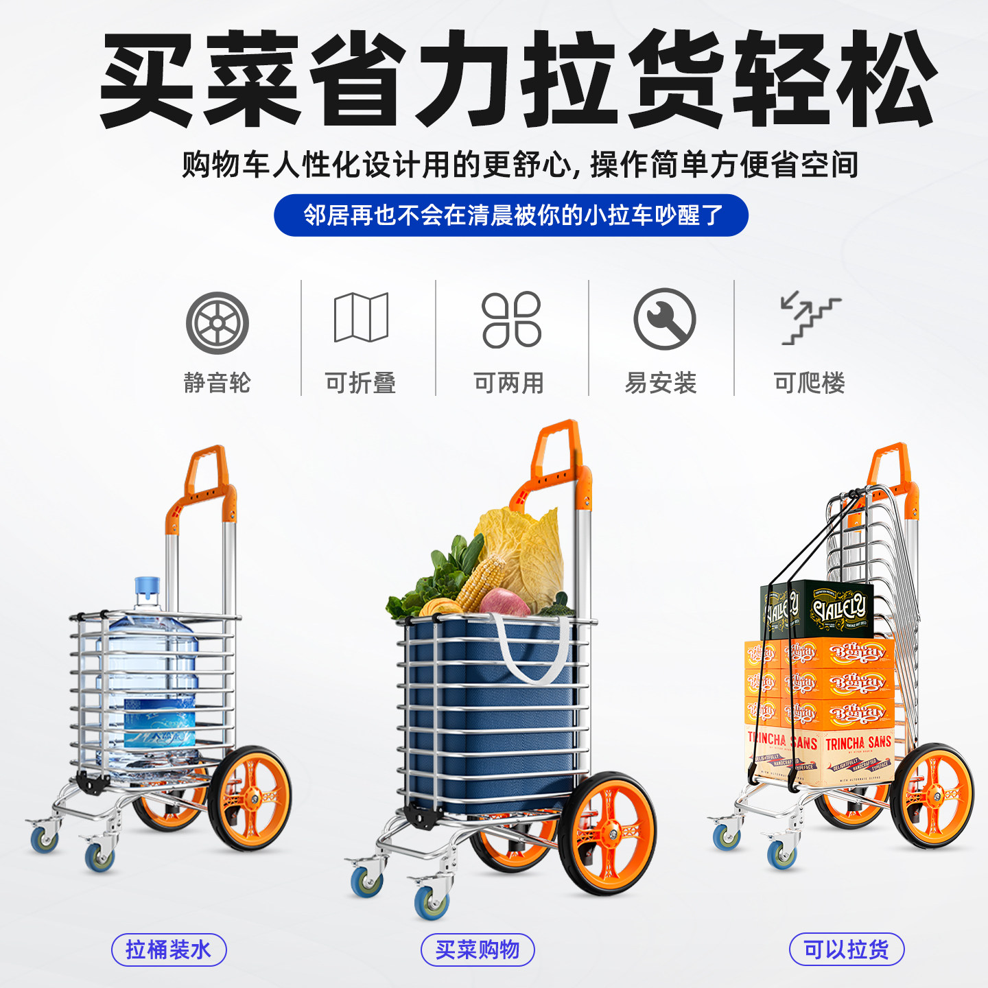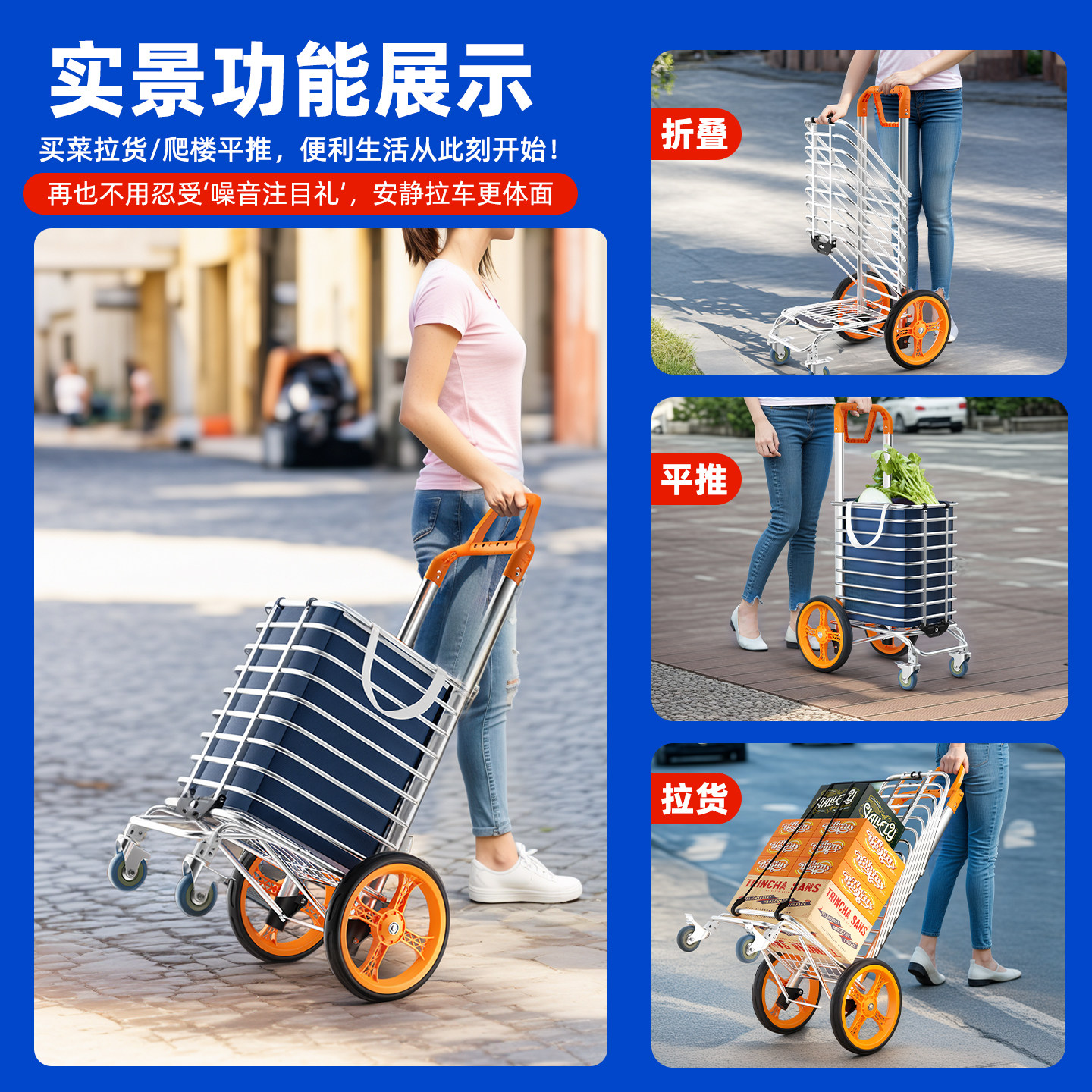 买菜车小拉车轻便手拉车可折叠拉杆车小推车老人购物车爬楼梯家用