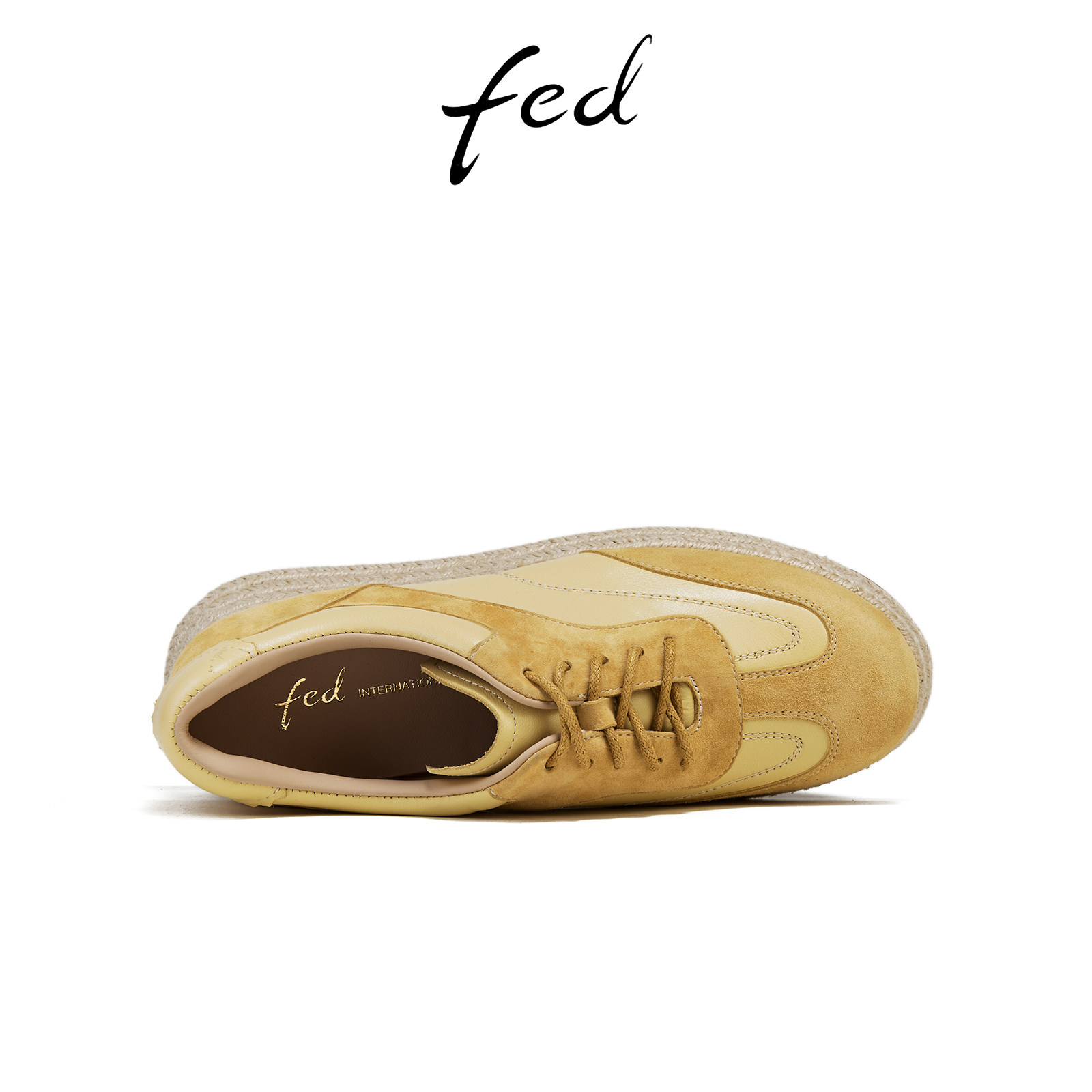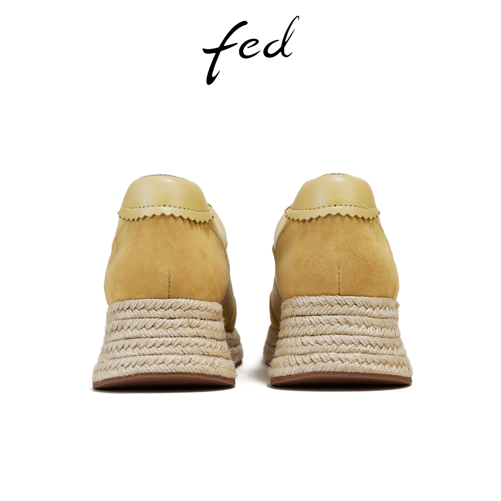 fed坡跟德训鞋女春季新款女鞋麻边厚底鞋深口单鞋女款S0222-YA017