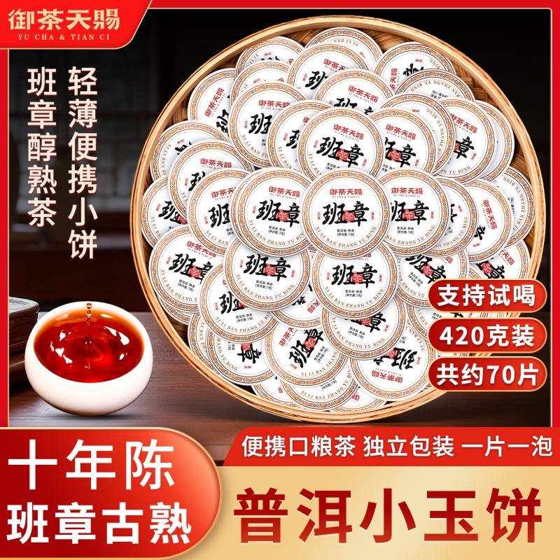以上老班章普洱茶熟茶云南古树熟普小玉饼小包装普洱口粮茶叶送礼