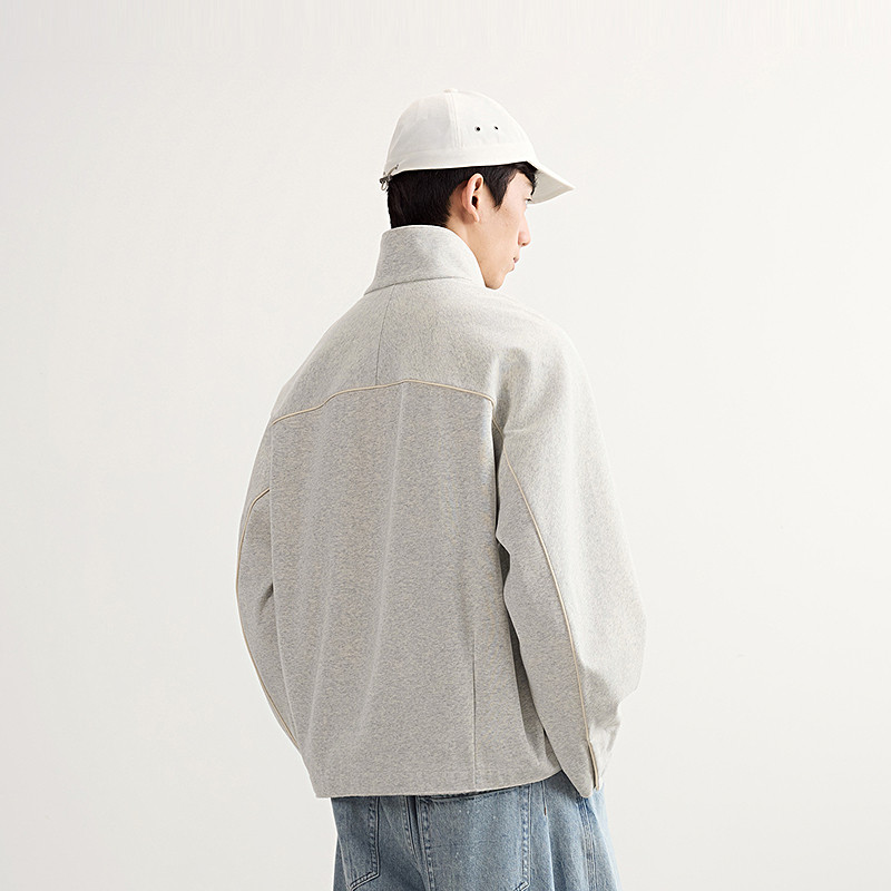 速写男装早春新款男士卫衣纯色立领开襟拉链卫衣外套休闲通勤舒适