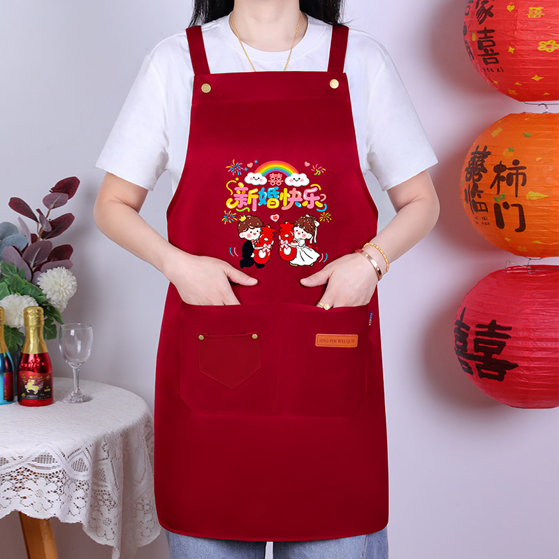 结婚专用红色围裙喜事帮忙喜庆围腰护袖套喜宴满月宴家用婚庆用品