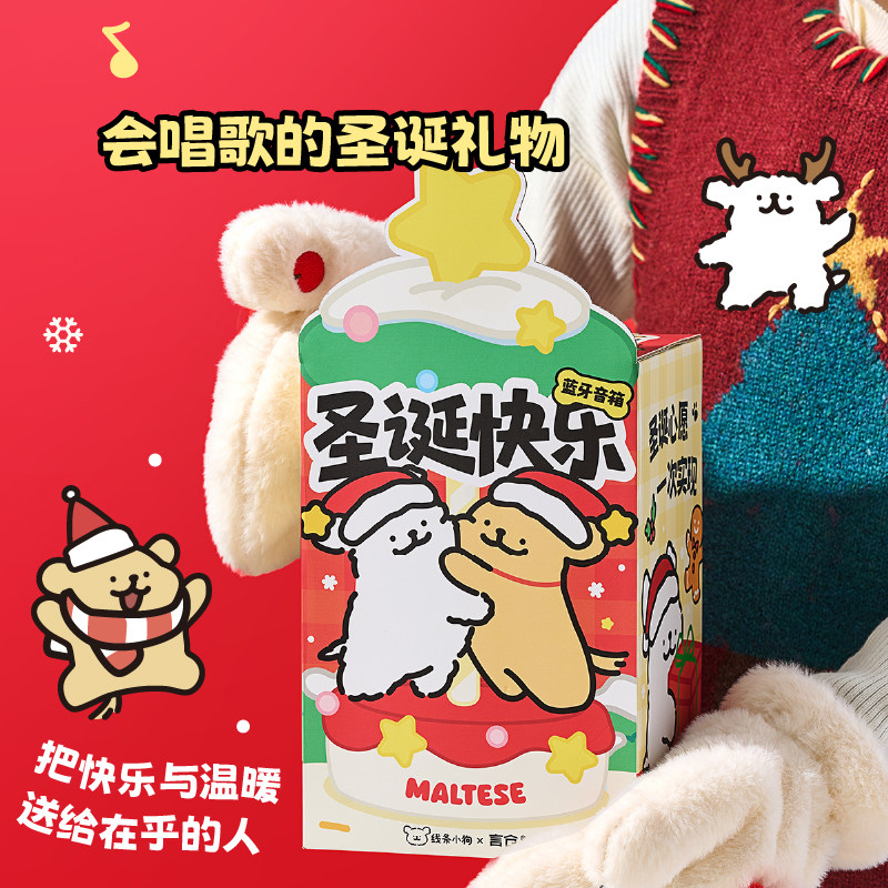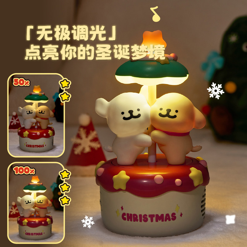 言仓线条小狗联名旋转音箱蓝牙音响夜灯摆件可爱闺蜜生日礼物