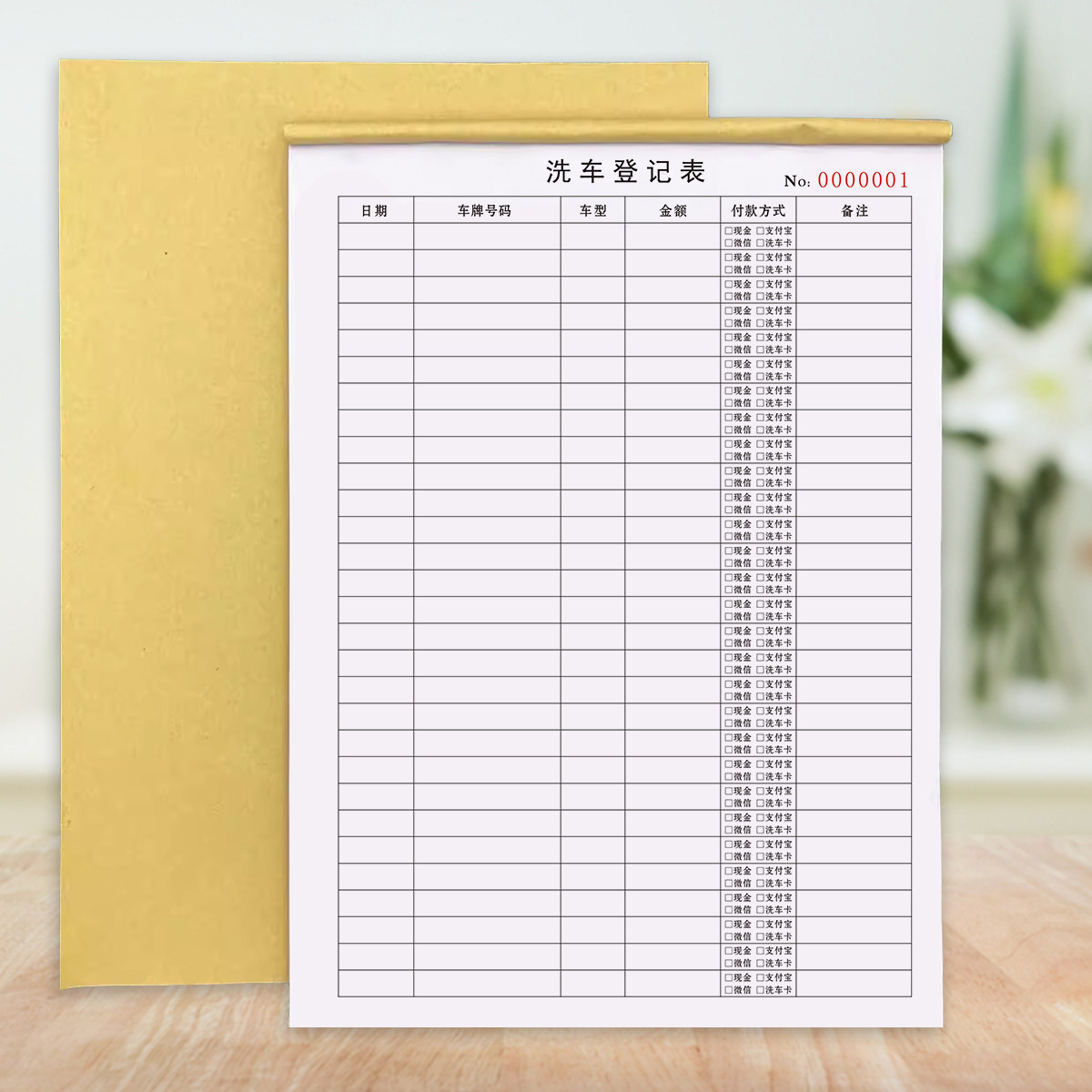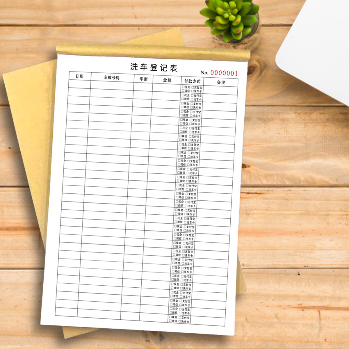 一本包邮A4洗车登记表车辆清洗维修单施工单接车登记表保养记录本汽车修理厂日销售表定制服务洗车美容登记簿
