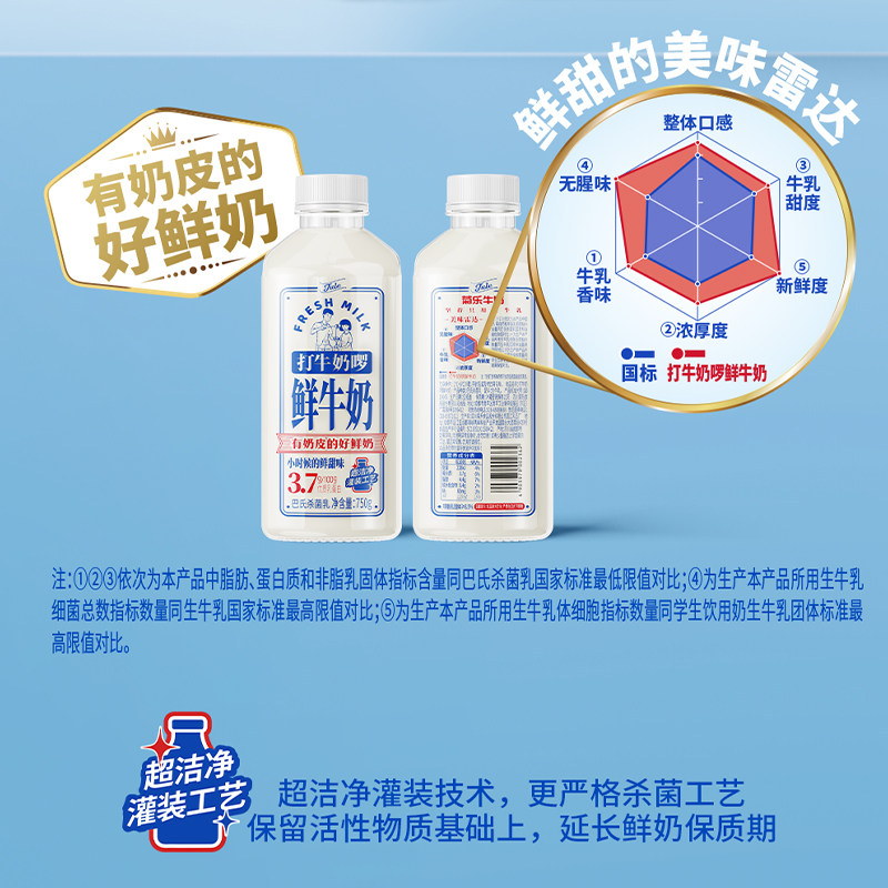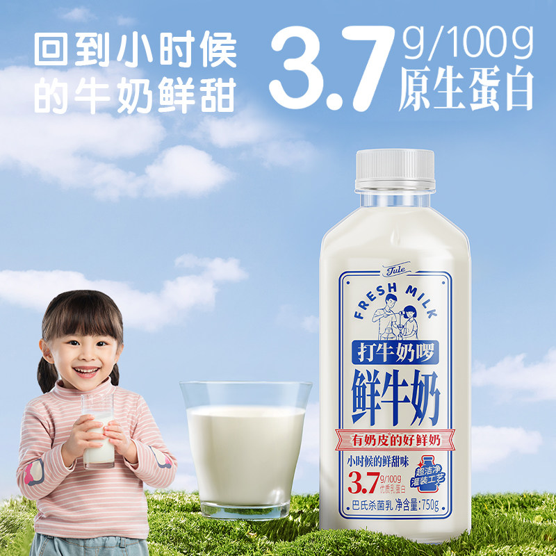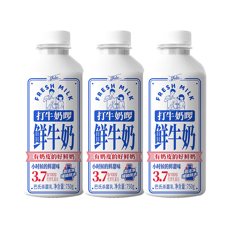 菊乐巴氏杀菌鲜牛奶750g*3瓶低温奶儿童营养早餐牛奶顺丰包邮鲜奶