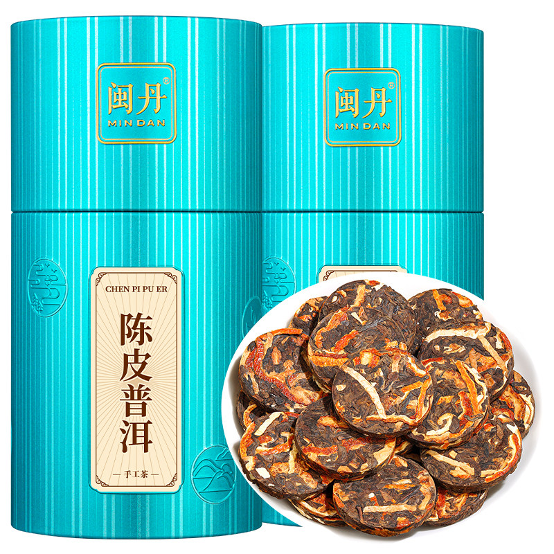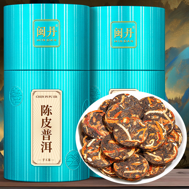 陈皮普洱茶饼茶叶柑普茶陈年熟茶新会正宗云南小饼干茶500g罐装