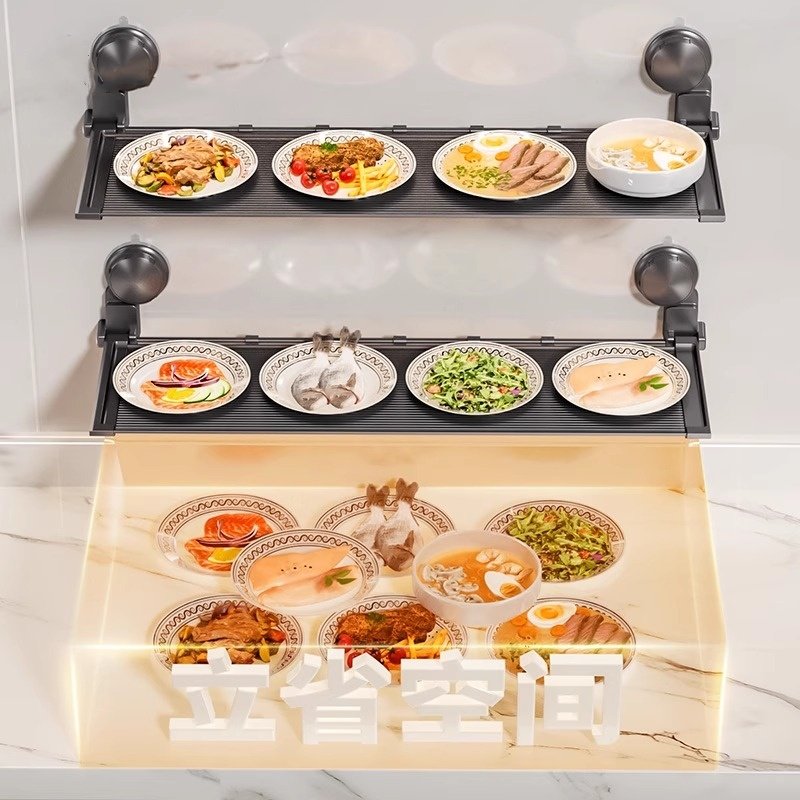 吸盘可折叠厨房备菜置物架多层隐形配菜盘多功能壁挂收纳放菜架子