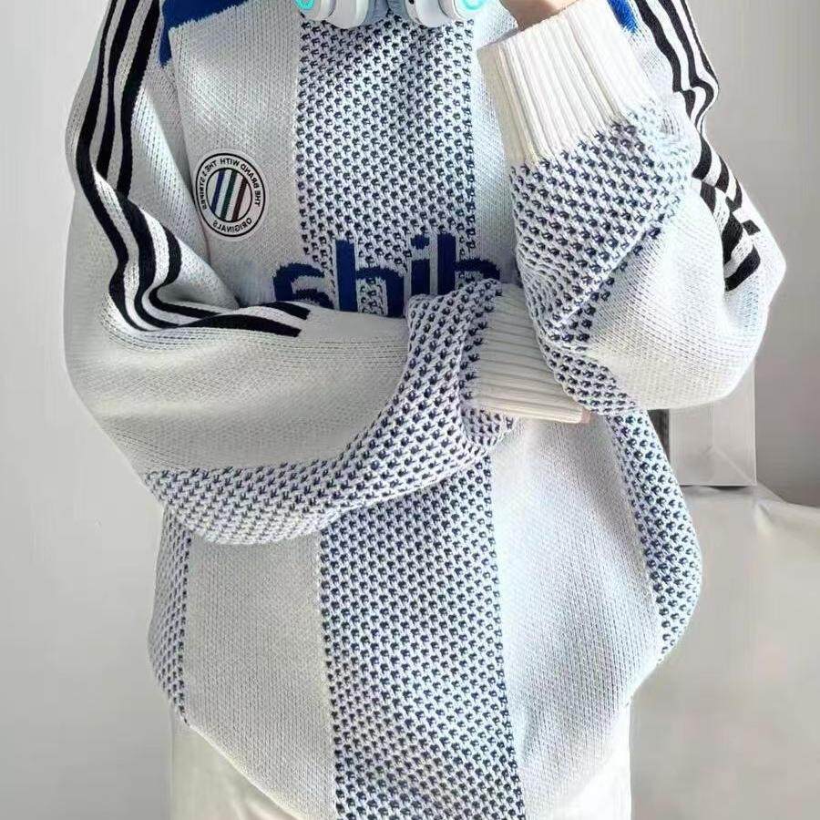 针织毛衣复古穿搭球衣风格男女同款运动套头衫情侣提花毛衣