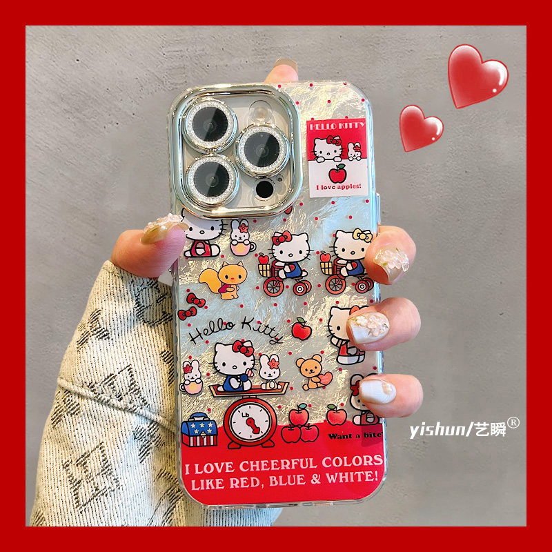 适用iPhone16ProMax手机壳苹果17pro日韩ins可爱卡通KT猫15闪粉镜头全包14女款13pm带挂绳12锡纸渐变11保护套