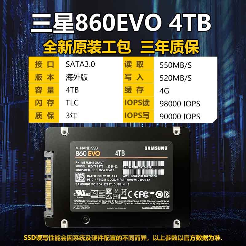 三星870EVO固态硬盘850EVO 500G1T 2T SATA3台式机笔记本电脑硬盘