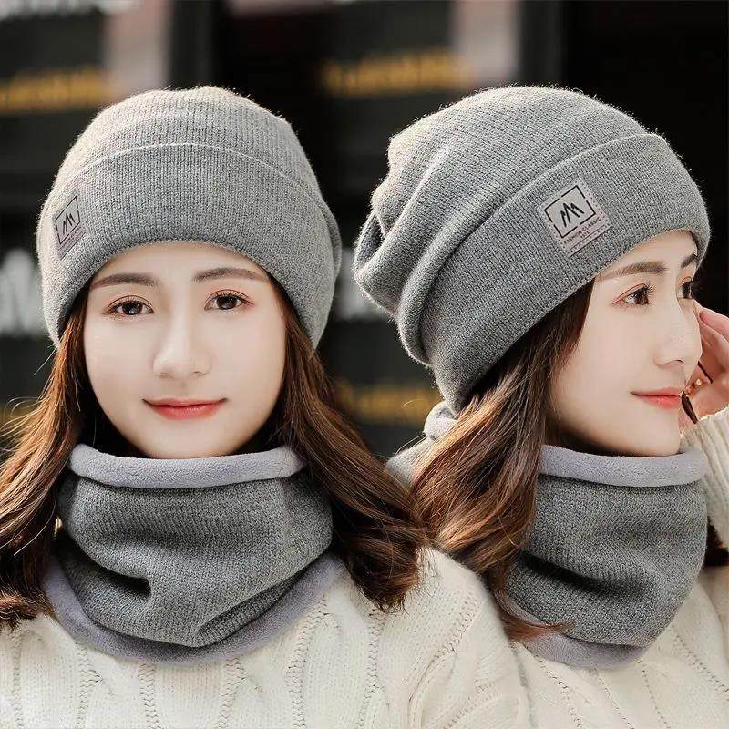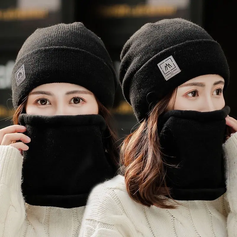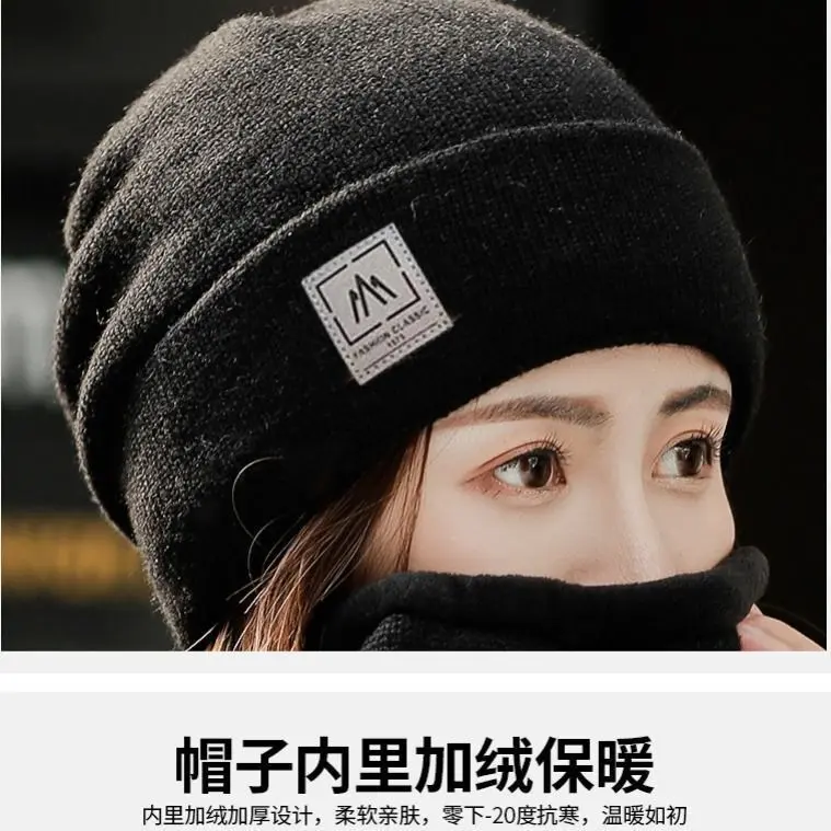 围巾帽子手套一体女连帽冬季帽可爱保暖围脖毛绒冬天三件套厚防寒