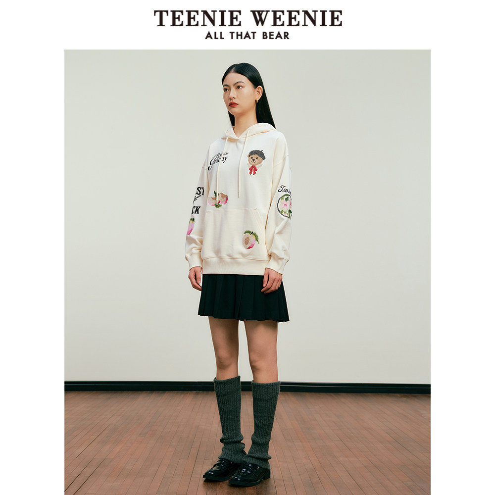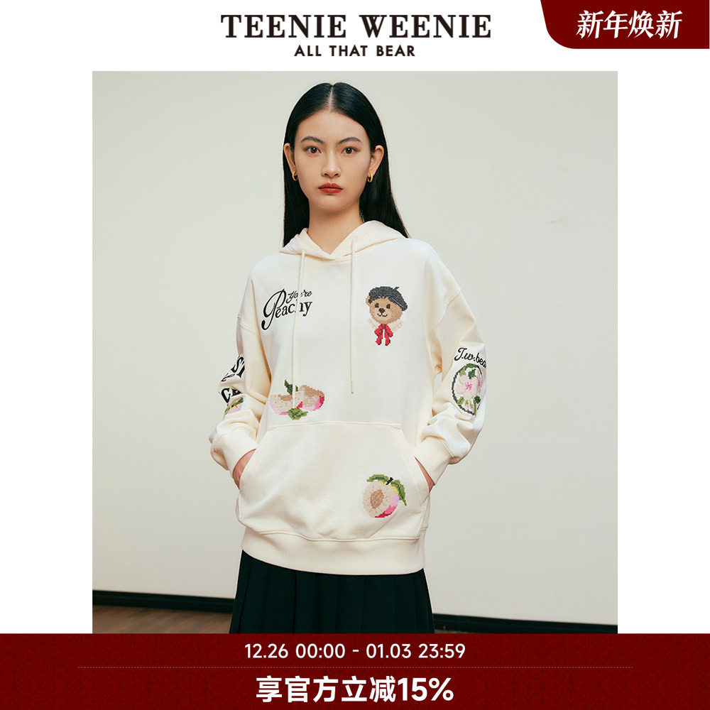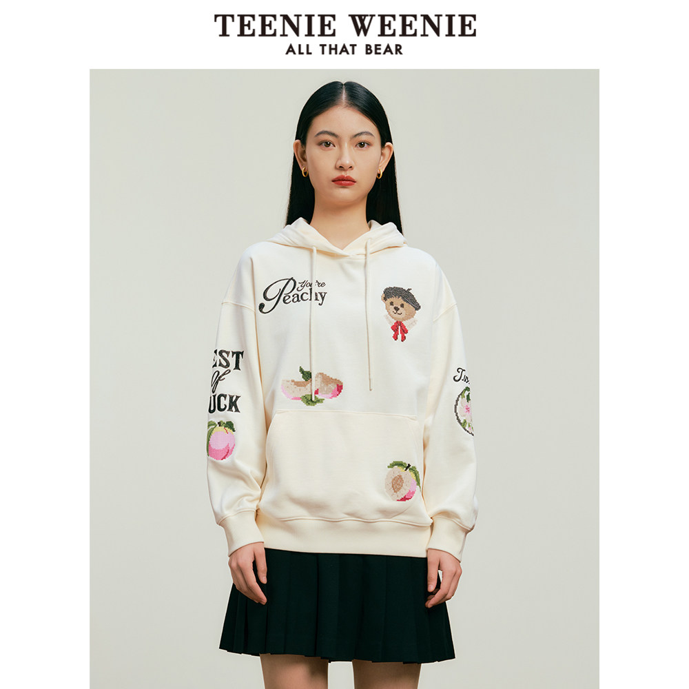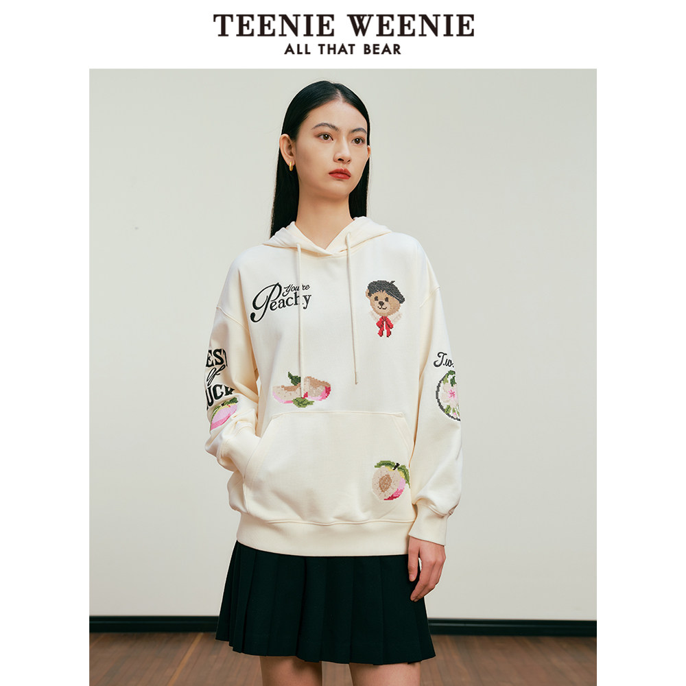 TeenieWeenie小熊奥莱秋季十字绣连帽卫衣宽松柔软上衣女装