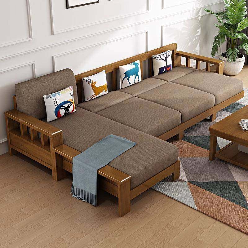 实木沙发现代简约新中式小户型转角贵妃沙发组合客厅冬夏两用家具