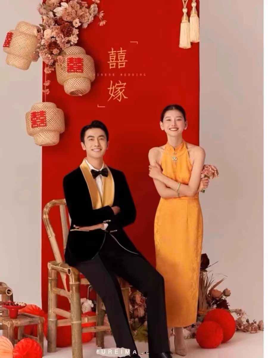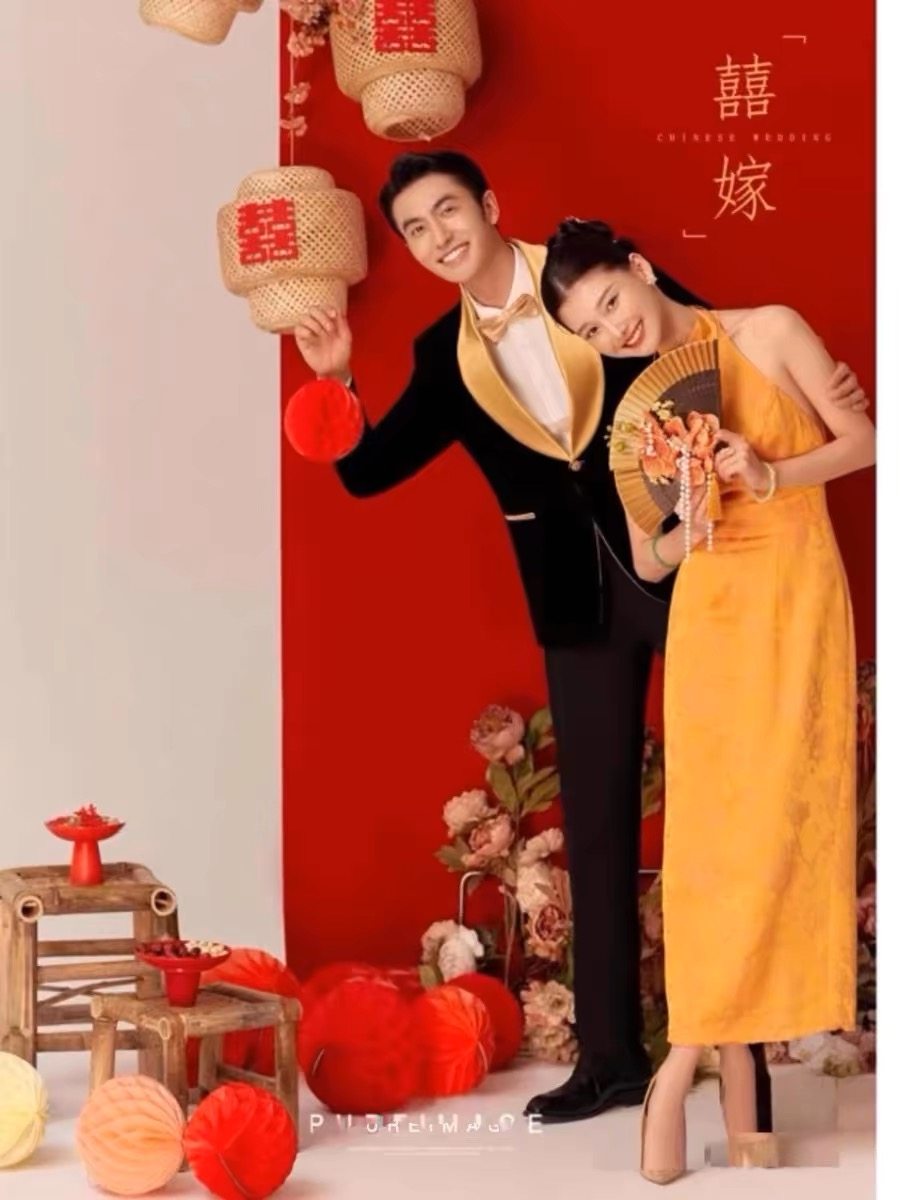 新中式婚纱摄影喜嫁风拍摄道具藤编镂空灯笼红背景装饰花蜂窝灯笼