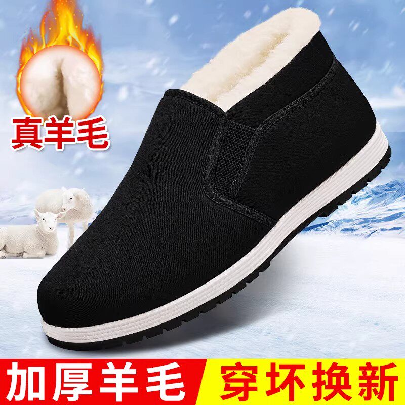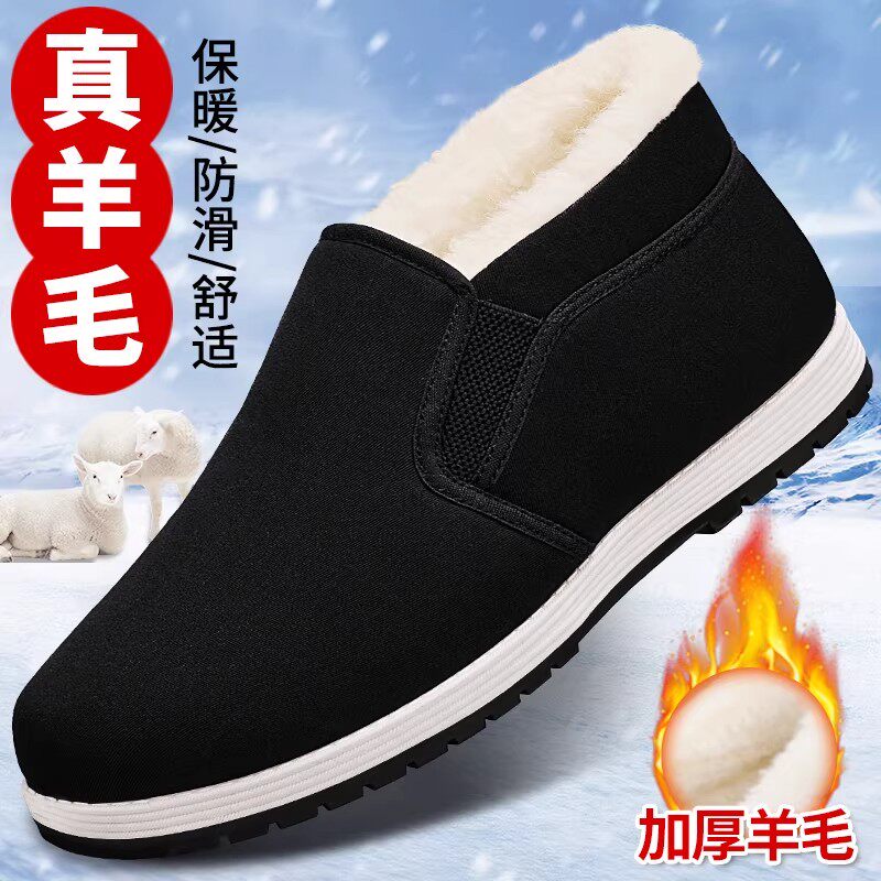 老北京布鞋男款2026中老年冬季加绒防滑一脚蹬爸爸千层底加厚棉鞋