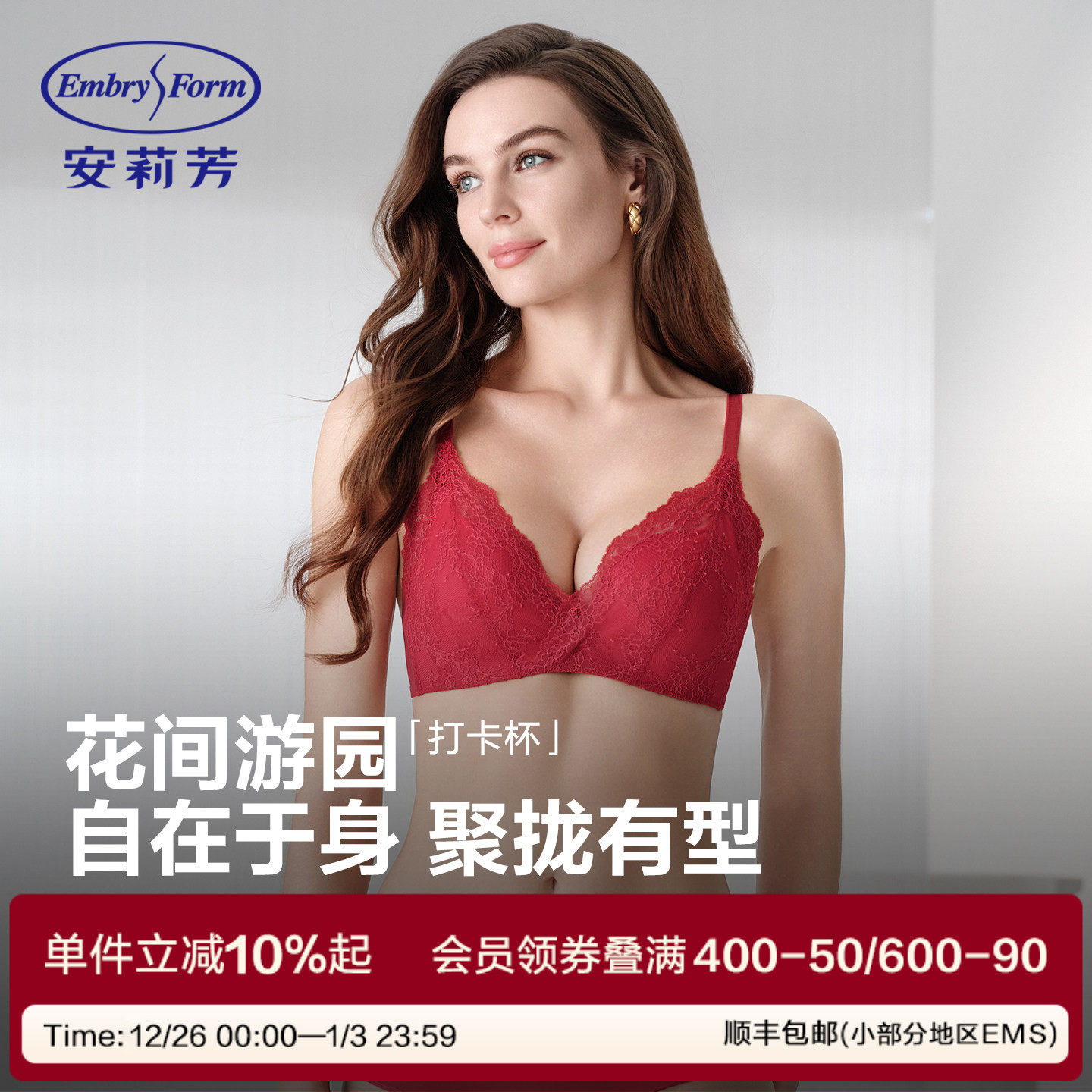 【花间游园舒挺打卡杯】安莉芳小胸聚拢显大文胸本命红色蕾丝内衣