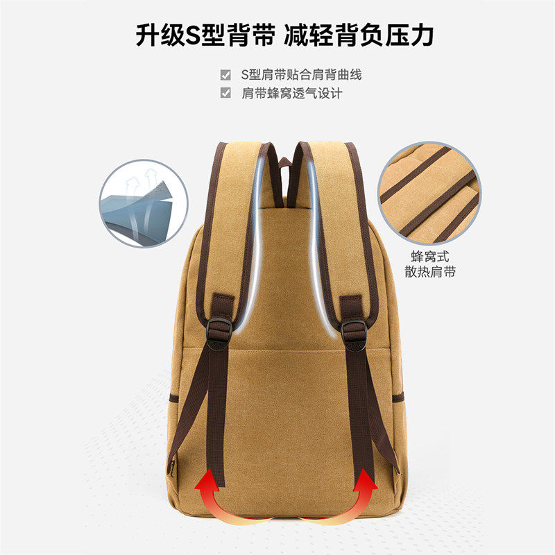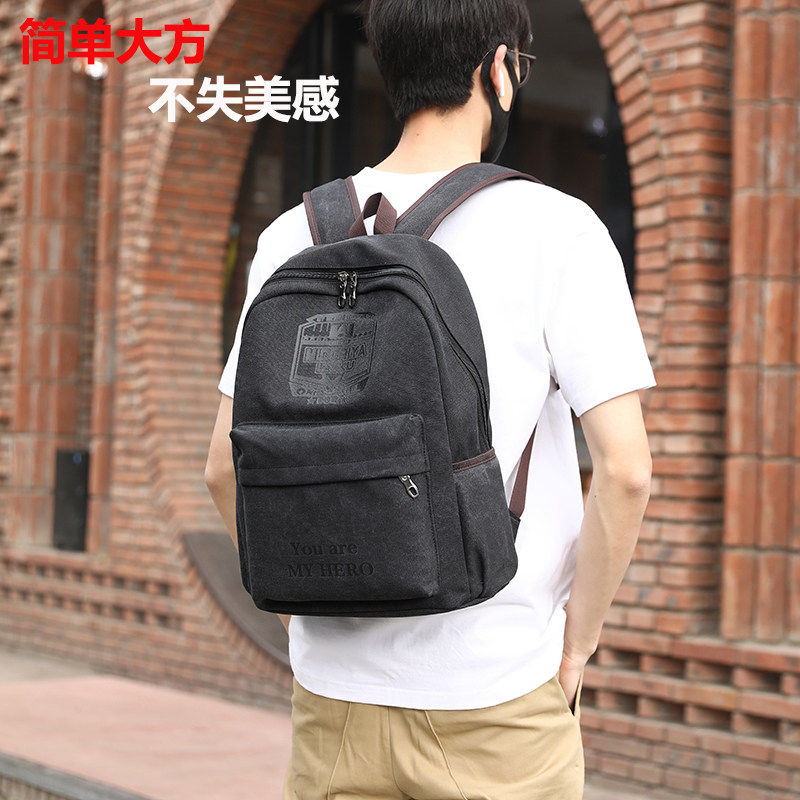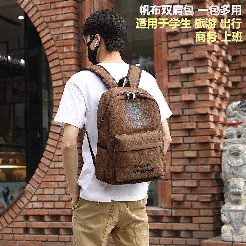 背部拉链背包港风复古书包男日系大容量高中学生大学生帆布双肩包