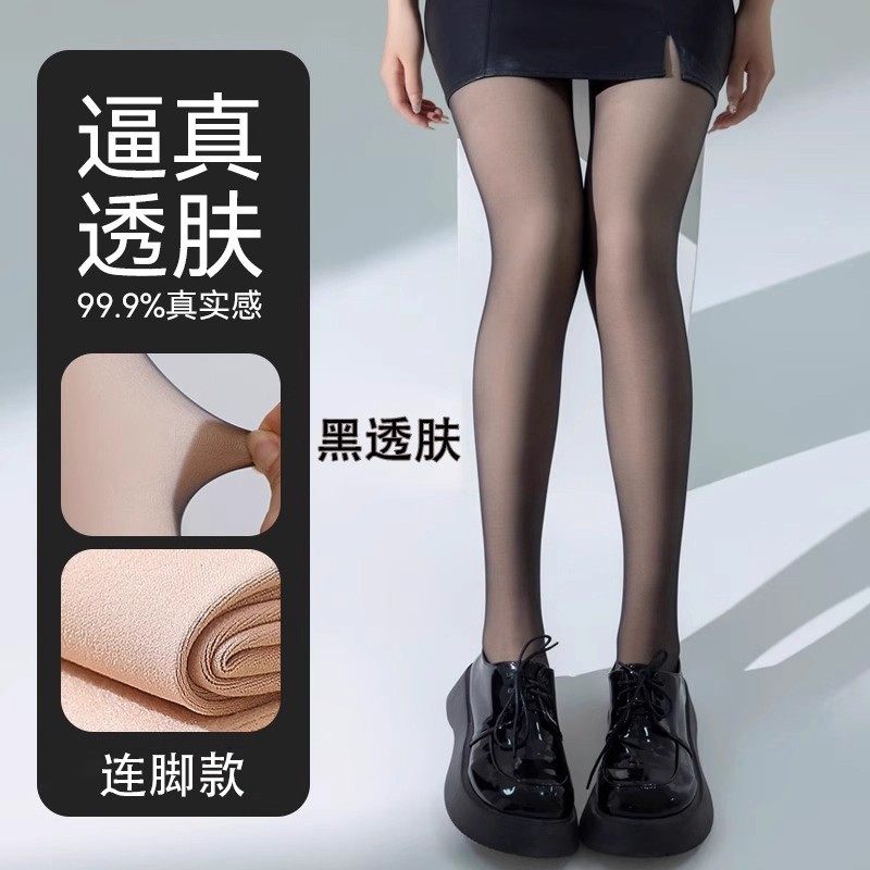 黑透肤光腿神器女秋冬连裤袜假透肉打底裤袜加绒黑丝袜水光收腹