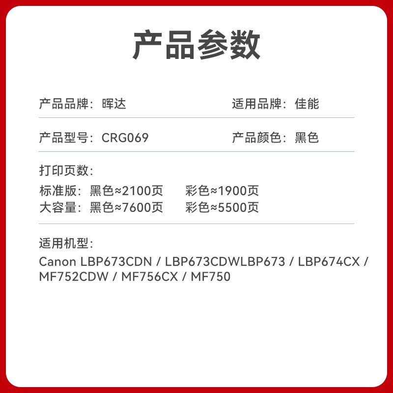 晖达适用佳能LBP673CDN硒鼓MF750打印机CANON LBP673cdw墨盒lbp674cx粉盒CRG069碳粉盒MF752CDW带芯片MF756CX