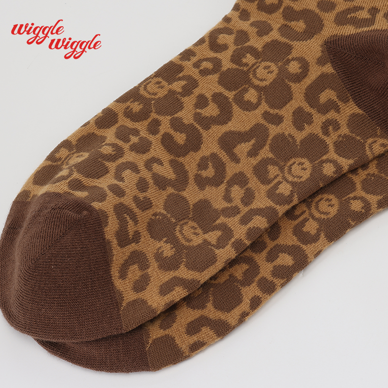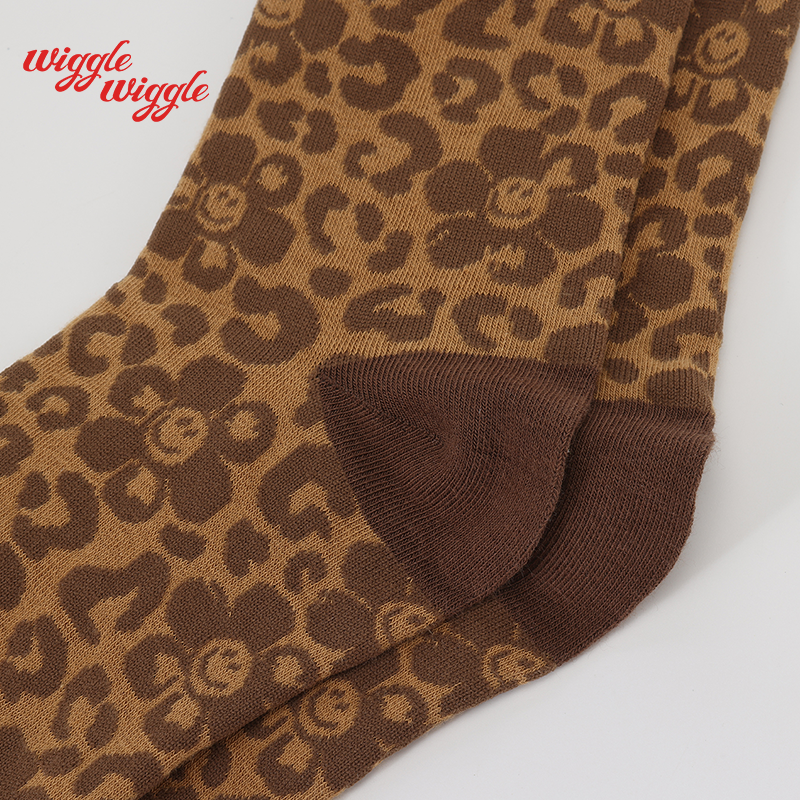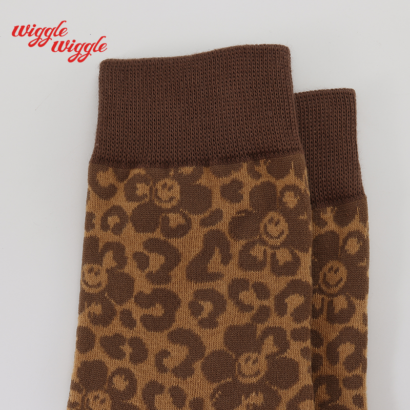 wigglewiggle26年韩国潮流笑脸花个性无骨复古豹纹加厚中筒长袜