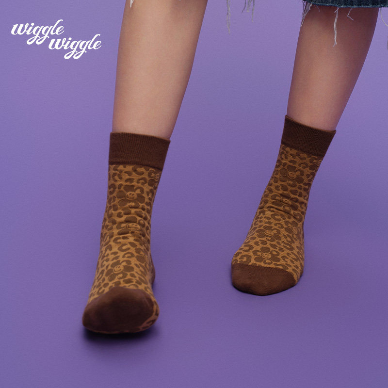 笑脸豹纹咖袜,解锁复古个性穿搭细节