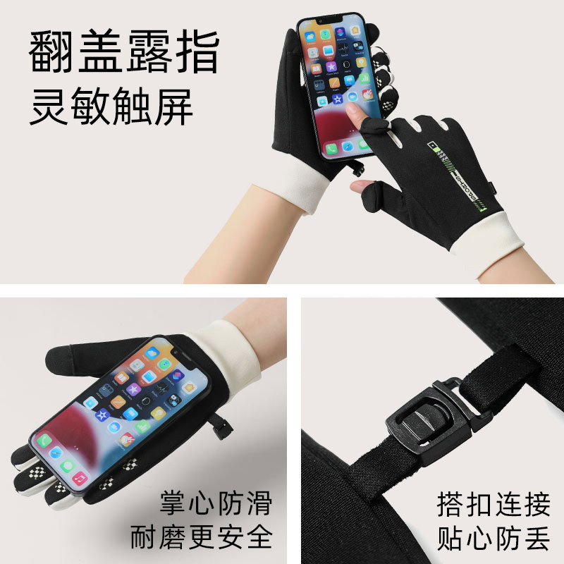 秋冬季手套女弹力德绒露指翻盖漏指骑车单层薄款保暖开车韩版骑车