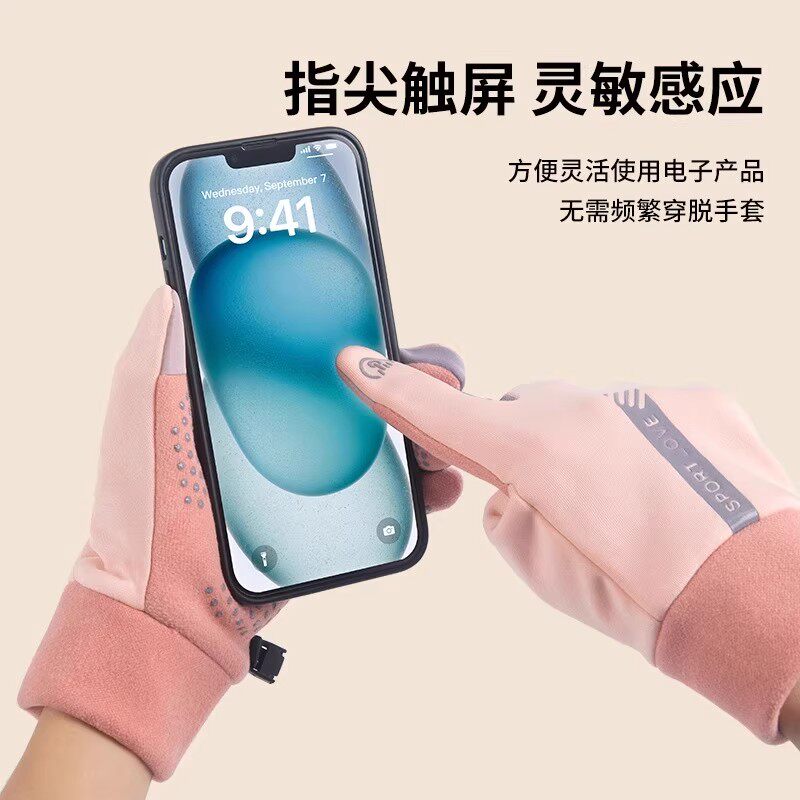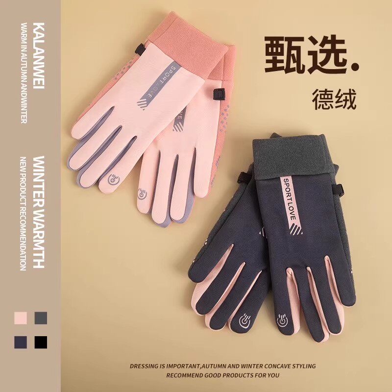 保暖手套女秋冬触屏加厚户外骑行开车德绒防风运动手套防冻男女款