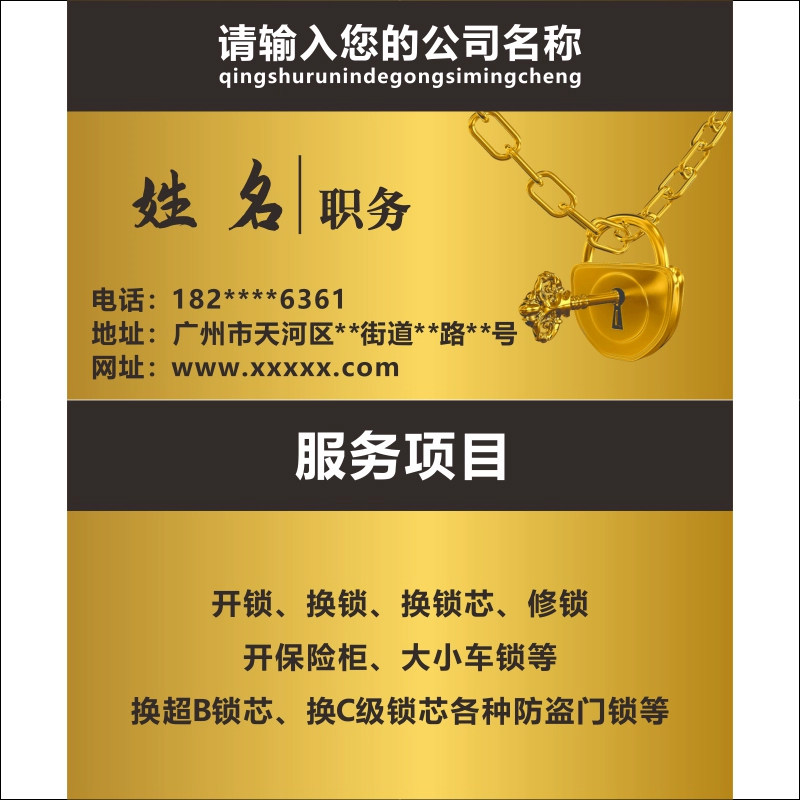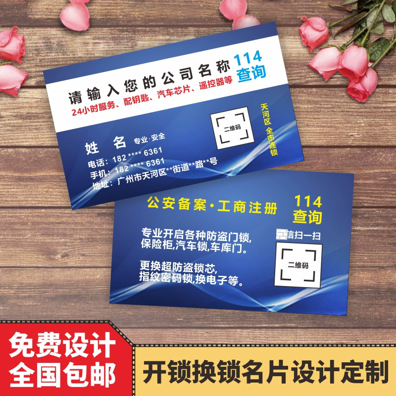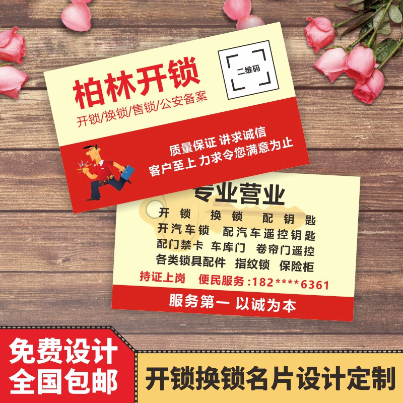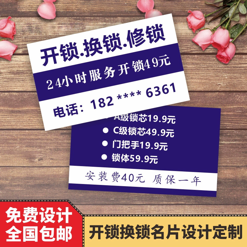 开锁名片锁业修锁换锁钥匙定制打印刷门小广告贴纸服务卡片PVC卡