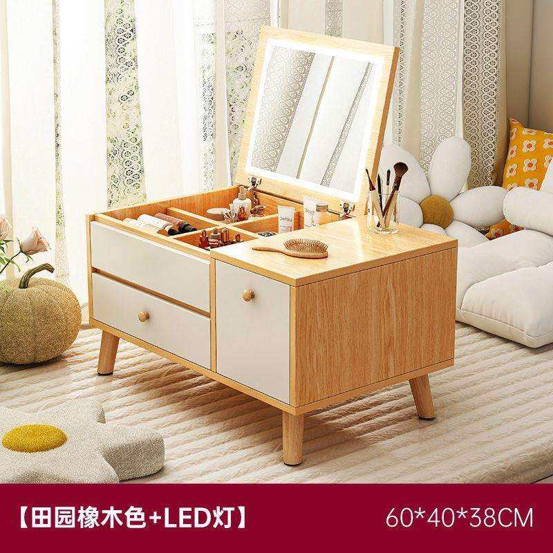 梳妆台镜子隐藏翻盖式收纳柜一体收纳盒卧室现代简约飘窗化妆台子
