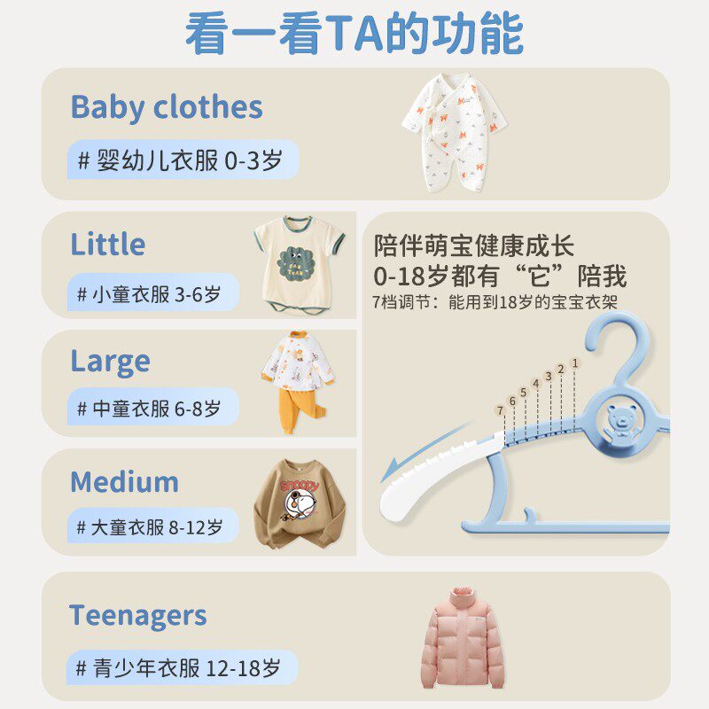 英氏婴儿晾衣架宝宝儿童多功能新生儿小孩专用衣撑家用挂衣可伸缩
