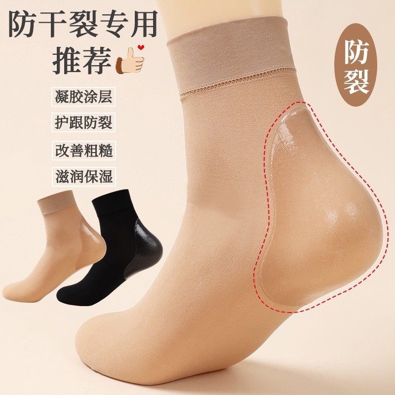 防裂袜女防裂型丝袜女防勾丝天鹅绒脚后跟袜子女干裂中筒保湿脚跟