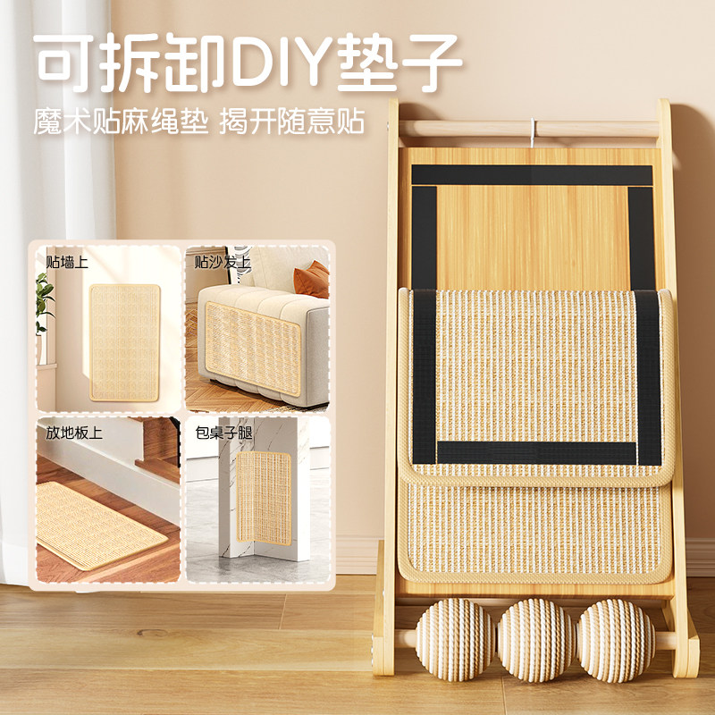 实木立式剑麻猫抓板耐磨不掉屑猫爪板猫抓垫猫抓剑麻球猫玩具耐抓