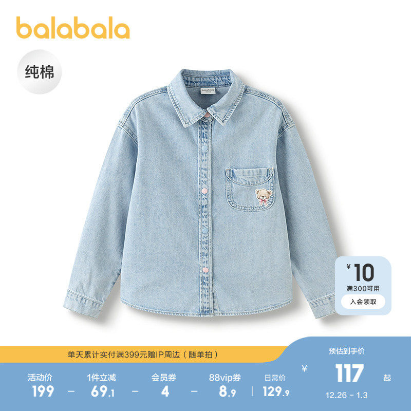 【商场同款】巴拉巴拉女童衬衫儿童长袖2025新款秋全棉牛仔衫舒适