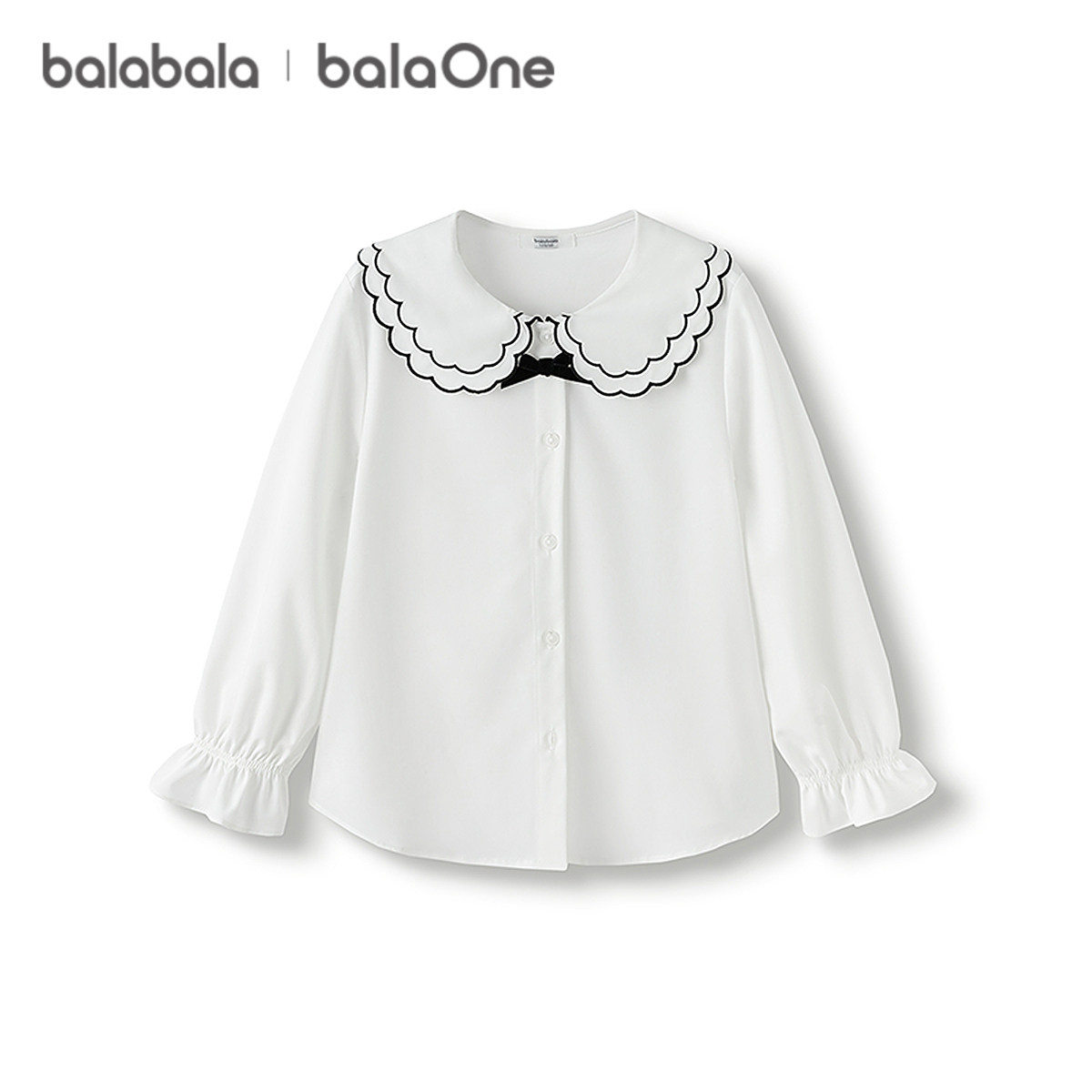 巴拉巴拉童装女童衬衫儿童长袖2025新款秋装学院风凉感抗菌白衬衫