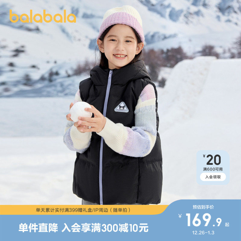 【库洛米IP】巴拉巴拉女童背心羽绒马甲秋冬童装儿童连帽三丽鸥萌