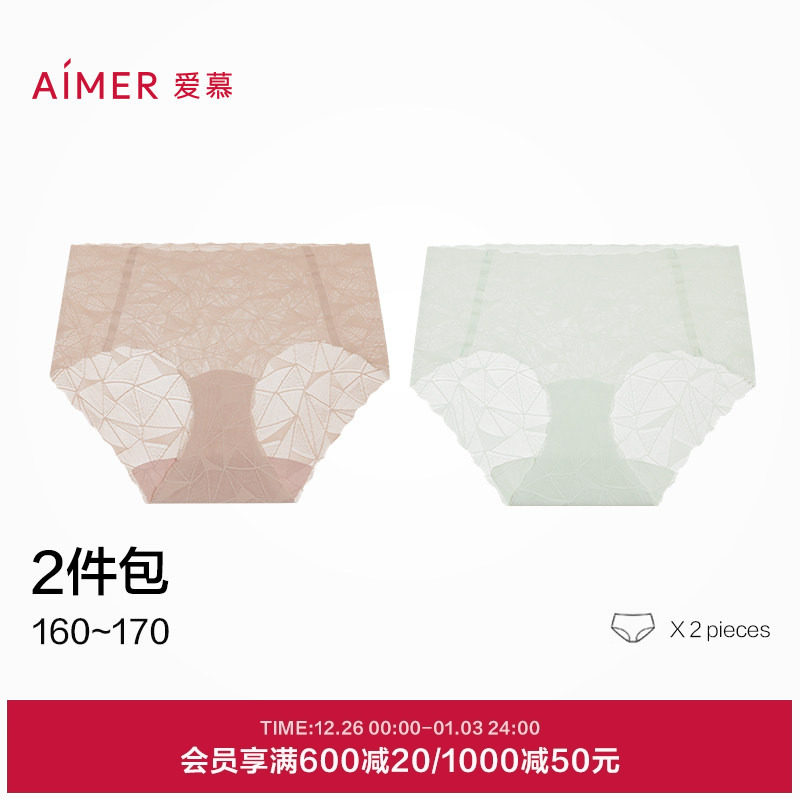 【2件包】爱慕光影女士内裤抗菌棉质底裆净痕轻薄蕾丝中腰平角裤