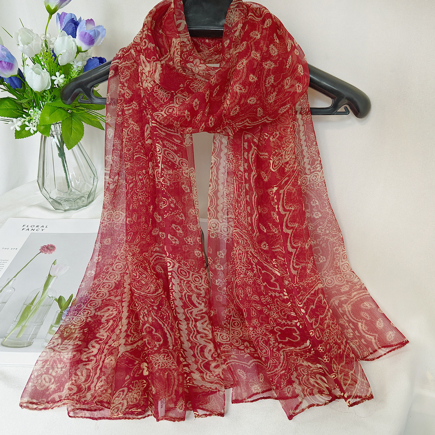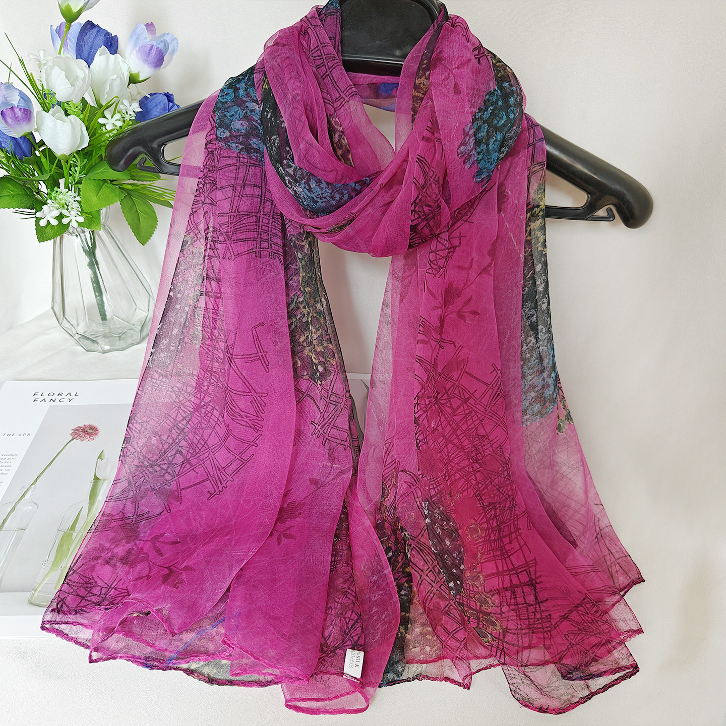 杭州丝绸真丝桑蚕丝长丝巾洋气时尚女士东风纱护颈高端围巾长纱巾